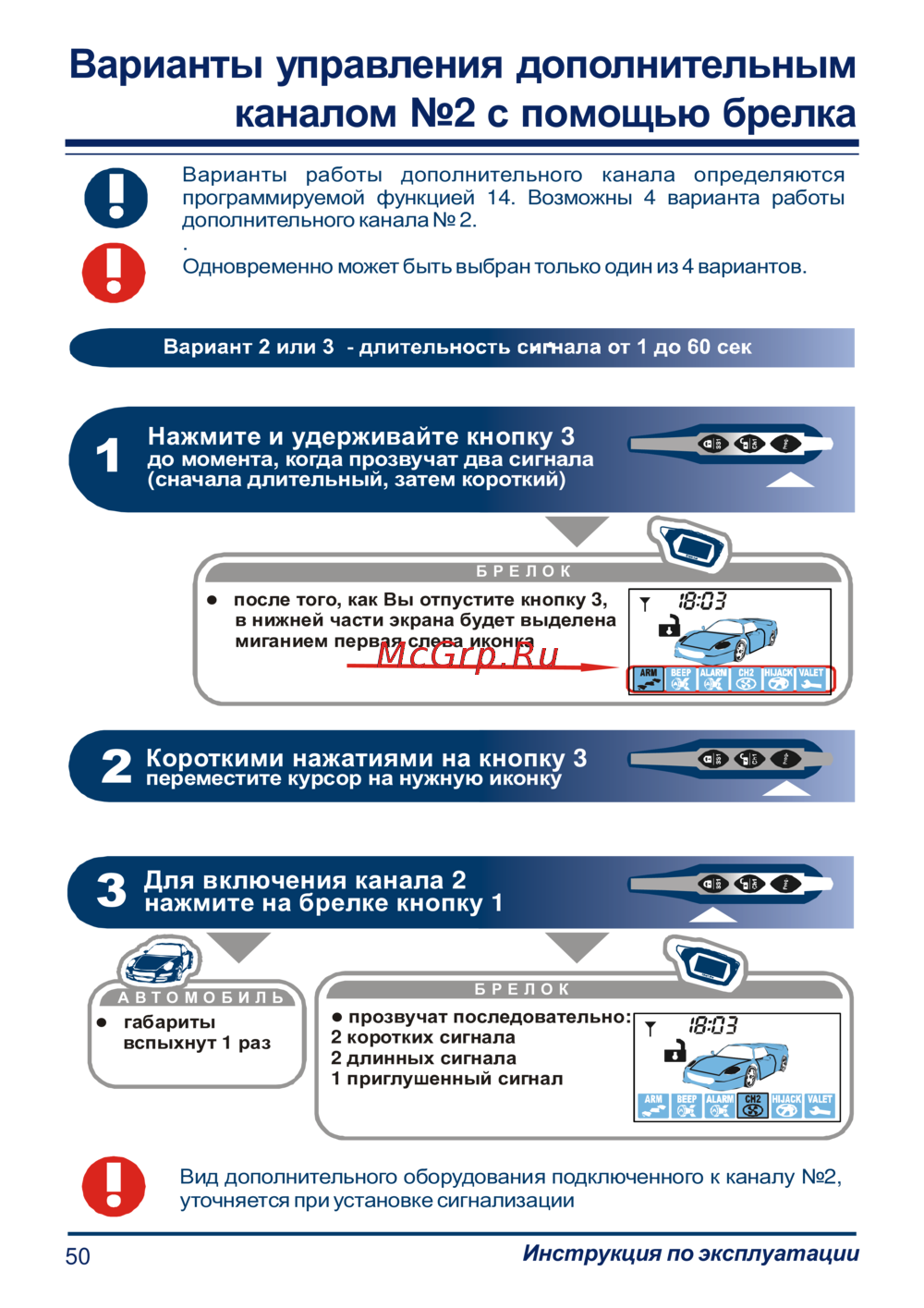 - Варианты управления дополнительным каналом 2 с помощью брелка p.50