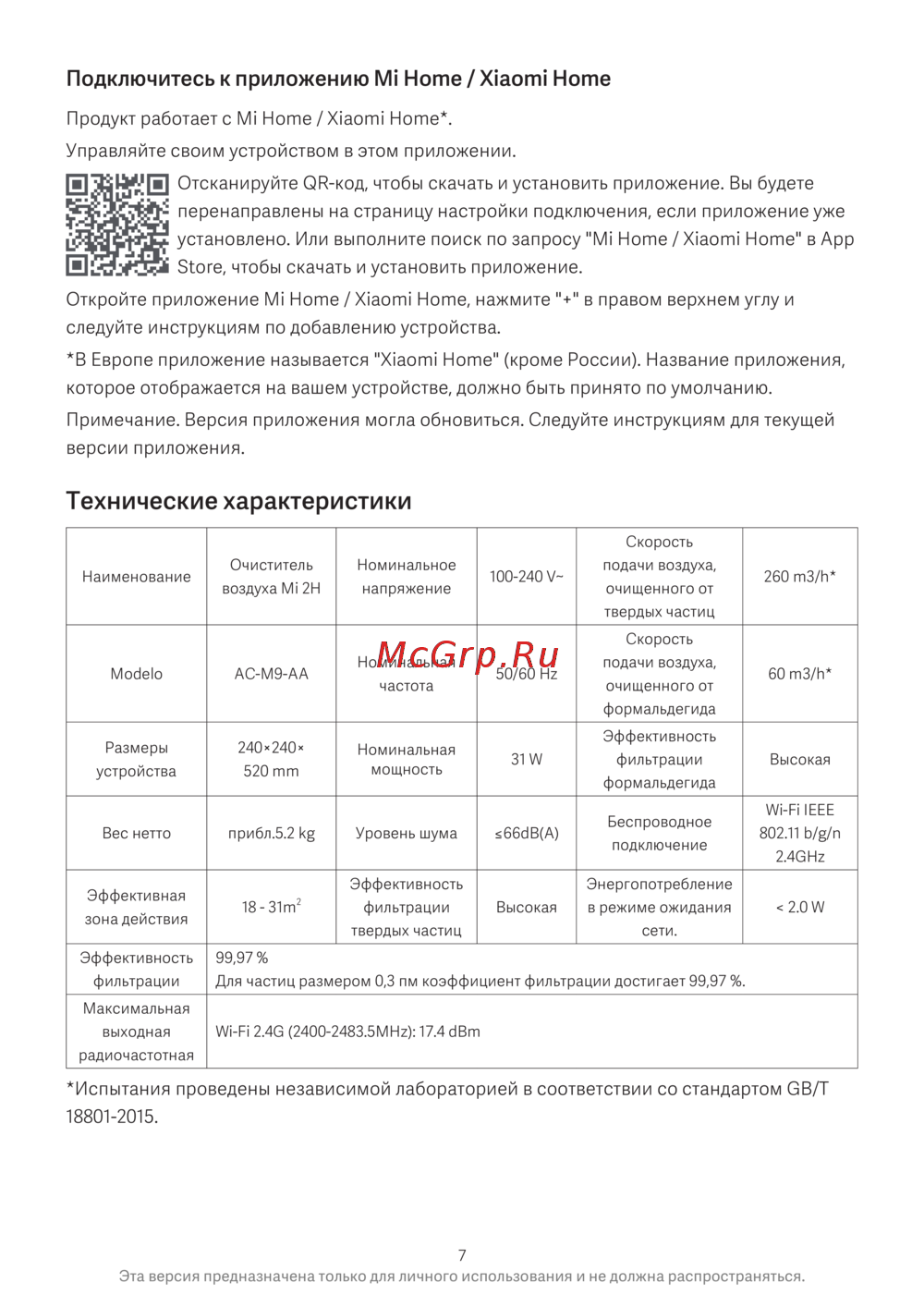 Xiaomi Mi Air Purifier Pro EUРуководство по эксплуатации -