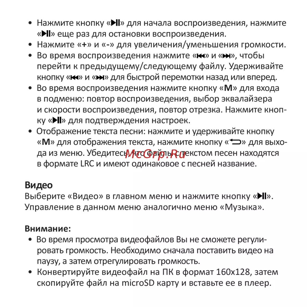Ritmix RHM-300 (512Mb)Инструкция по эксплуатации -
