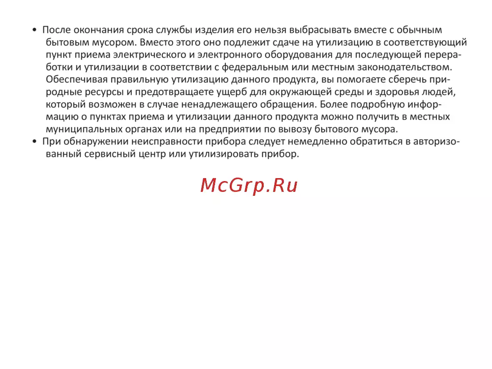 • При обнаружении неисправности прибора следует немедленно обратиться в авторизо-