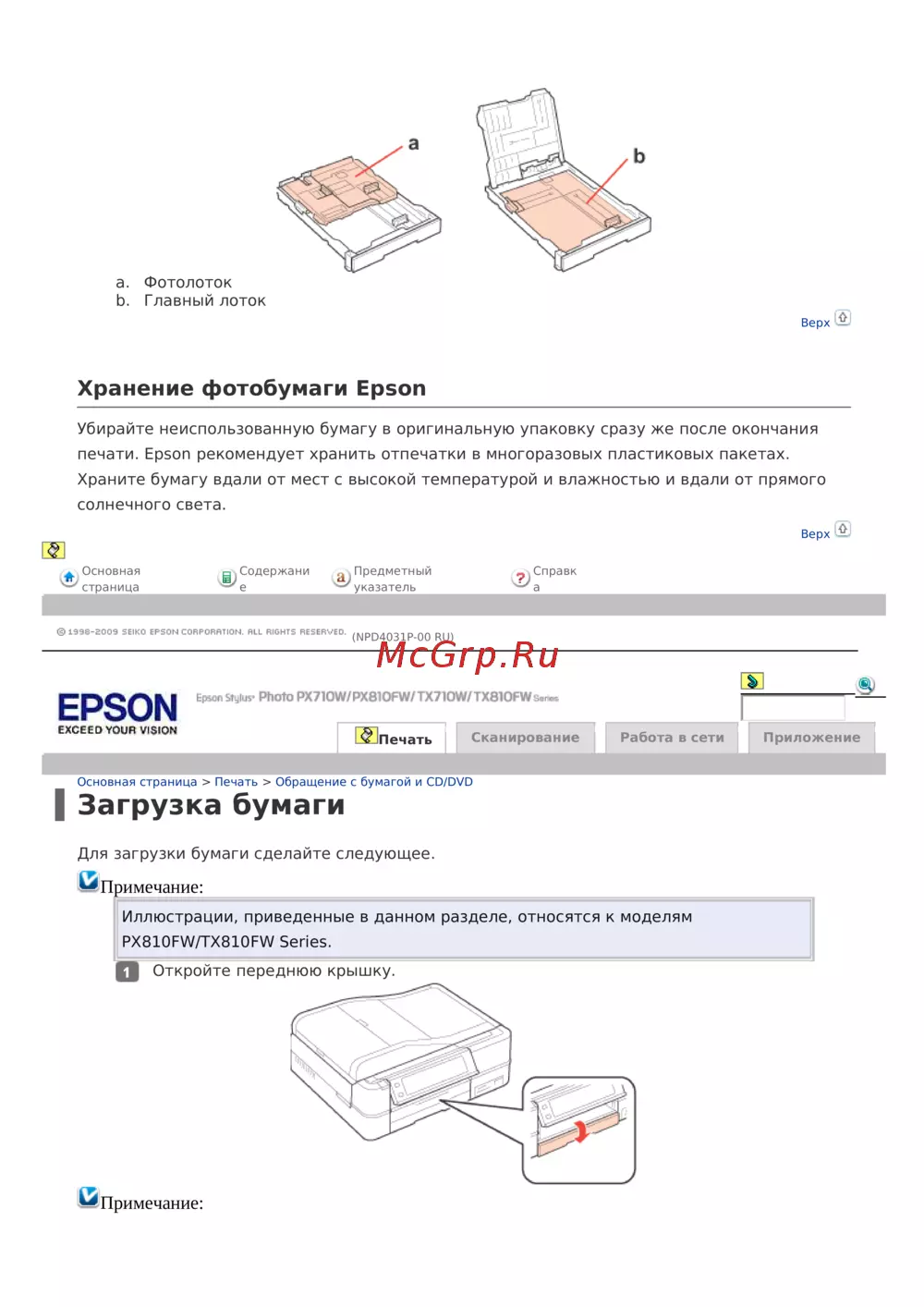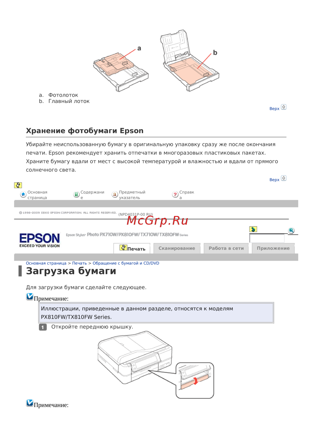 Epson Stylus Photo PX720WDИнструкция по эксплуатации -
