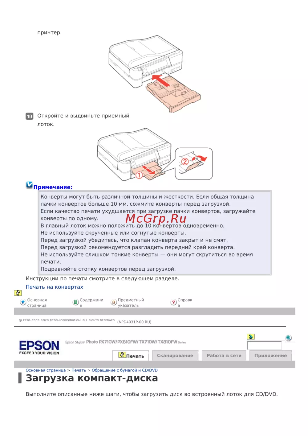 Epson Stylus Photo PX720WDИнструкция по эксплуатации -