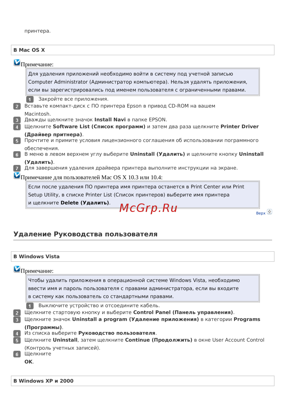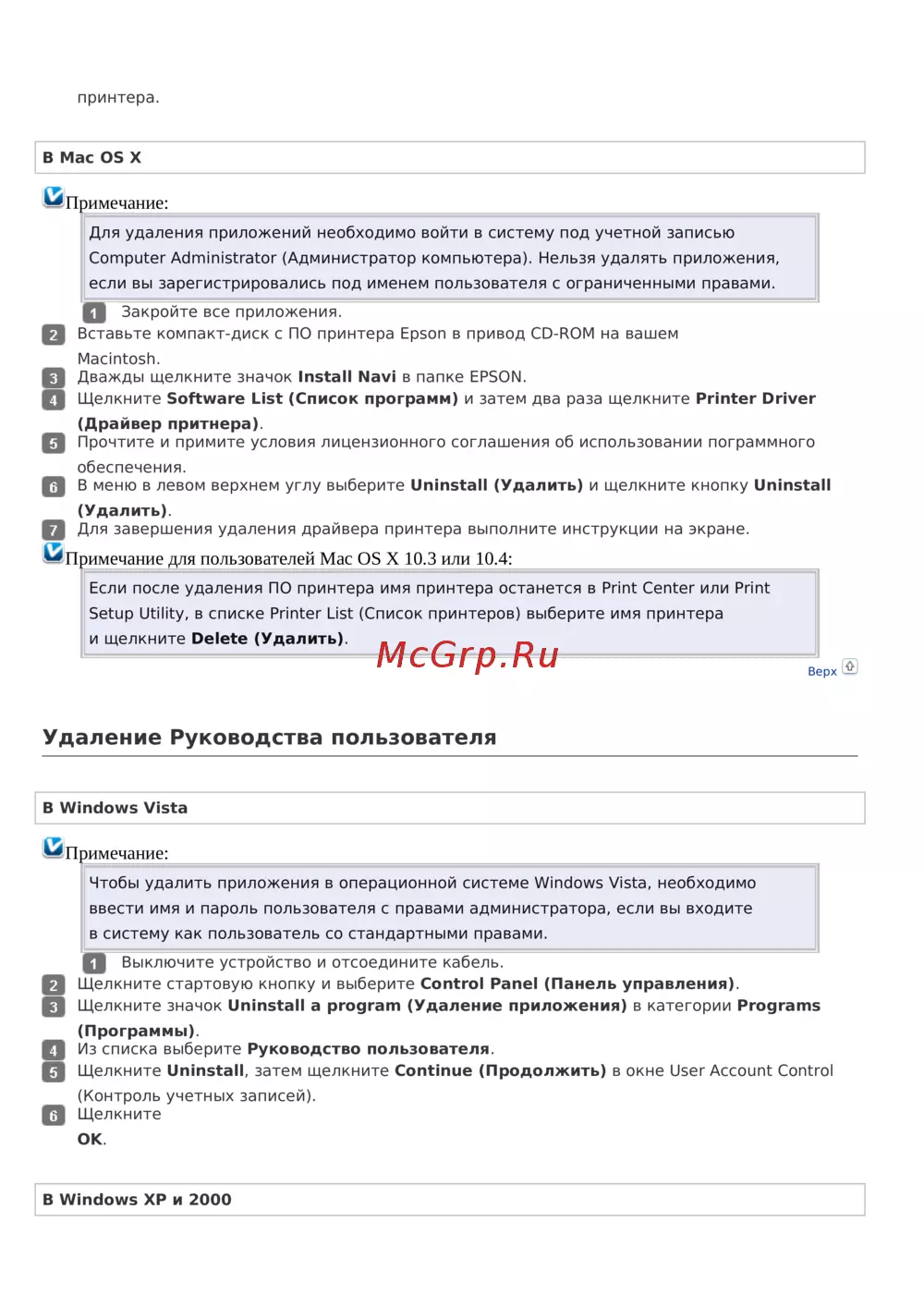 Удаление Руководства пользователя