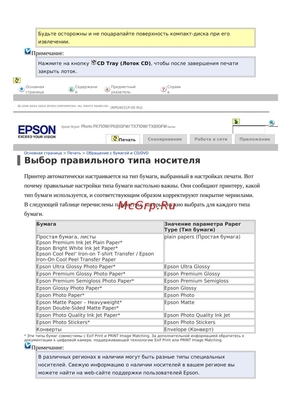 Epson Stylus Photo PX720WDИнструкция по эксплуатации -