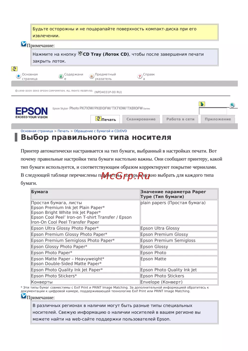 * Эти типы бумаг совместимы с Exif Print и PRINT Image Matching. За дополнительной информацией обратитесь к