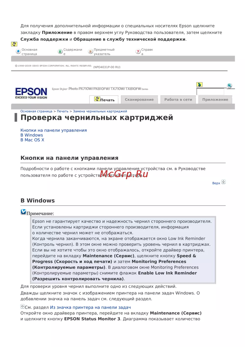 Epson Stylus Photo PX720WDИнструкция по эксплуатации -