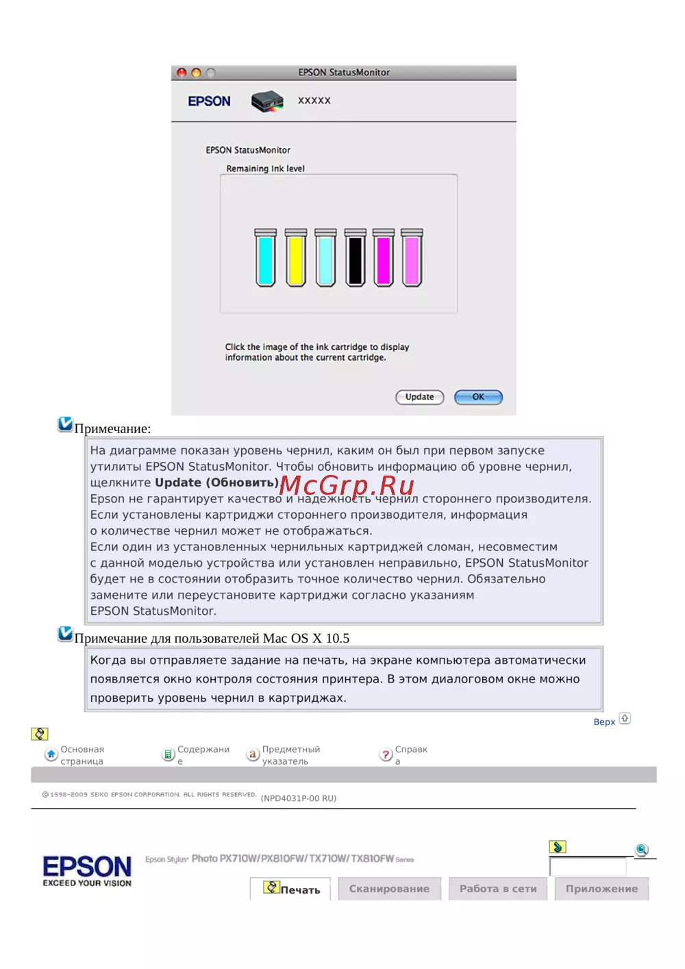 - Доступ к epson web to page p.5