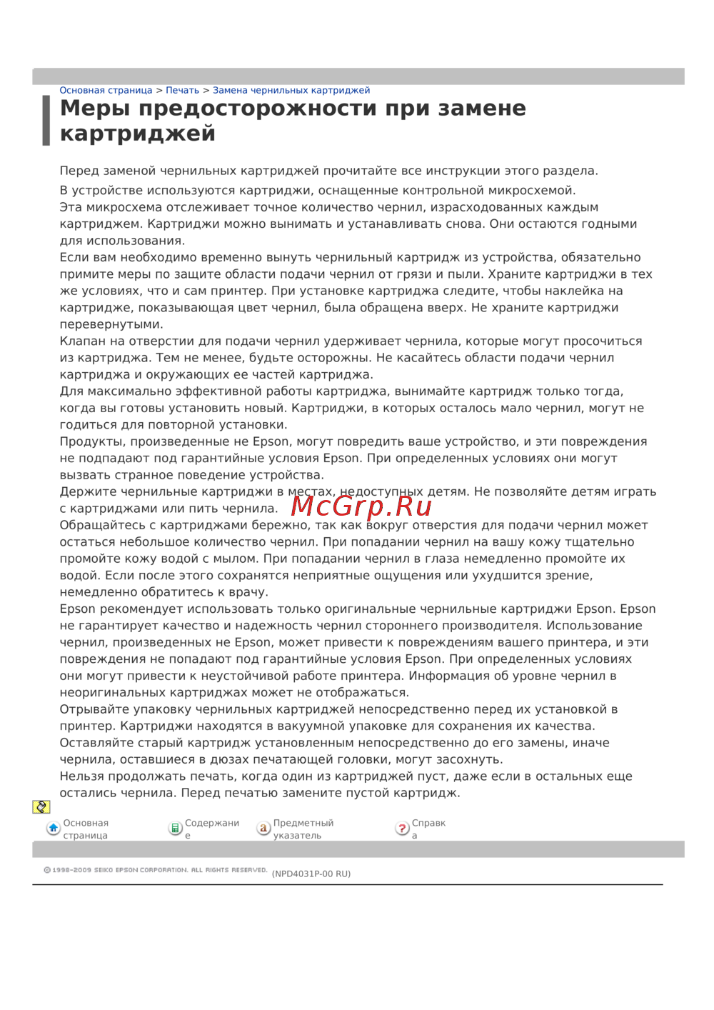 чернил, произведенных не Epson, может привести кповреждениям вашего принтера, иэти