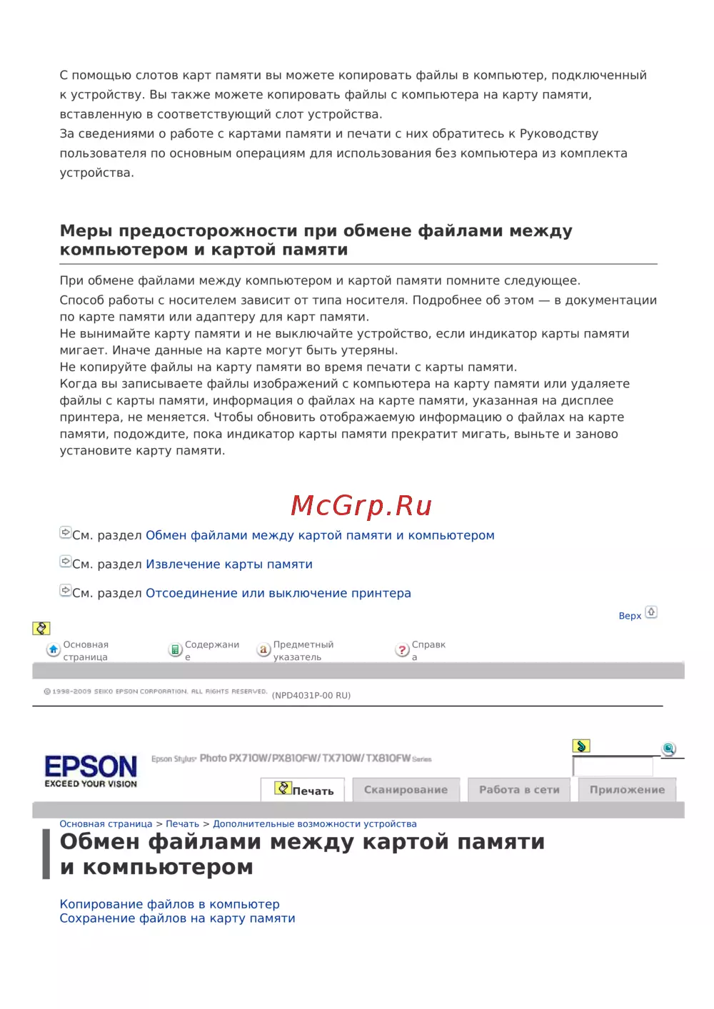 Epson TX710W — обмен файлами между картой памяти и компьютером: советы и рекомендации [120/176]