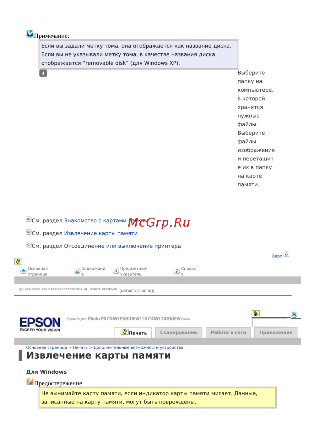 Epson Stylus Photo PX720WDИнструкция по эксплуатации -