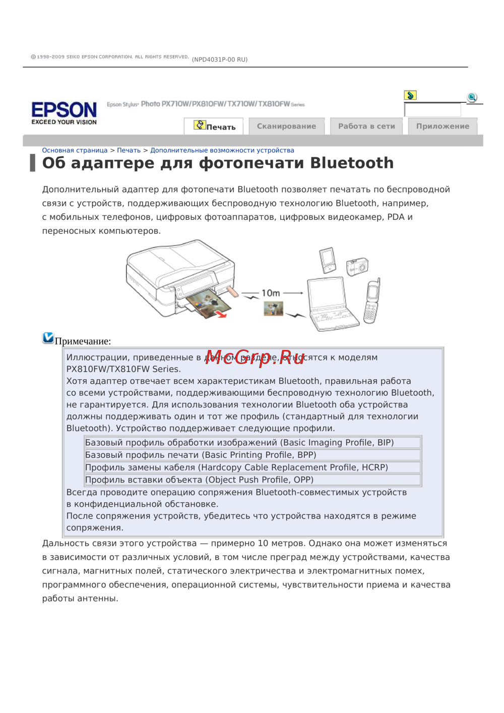 Epson Stylus Photo PX720WDИнструкция по эксплуатации -