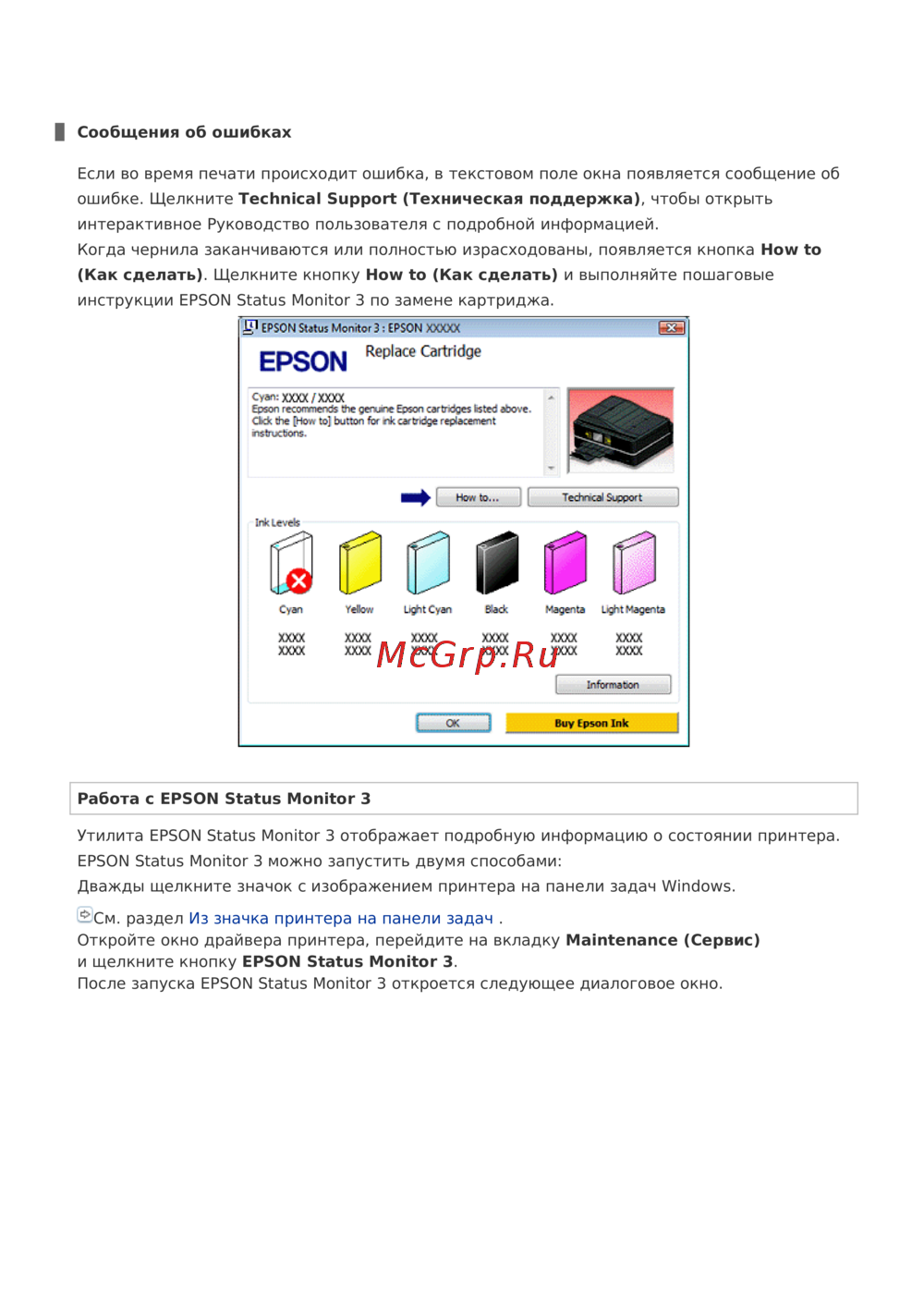 инструкции EPSONStatus Monitor3 по замене картриджа.