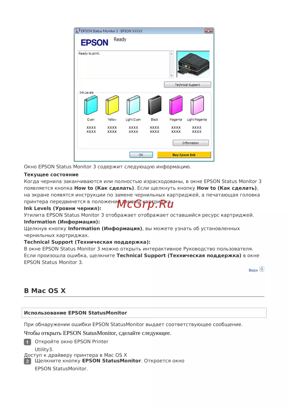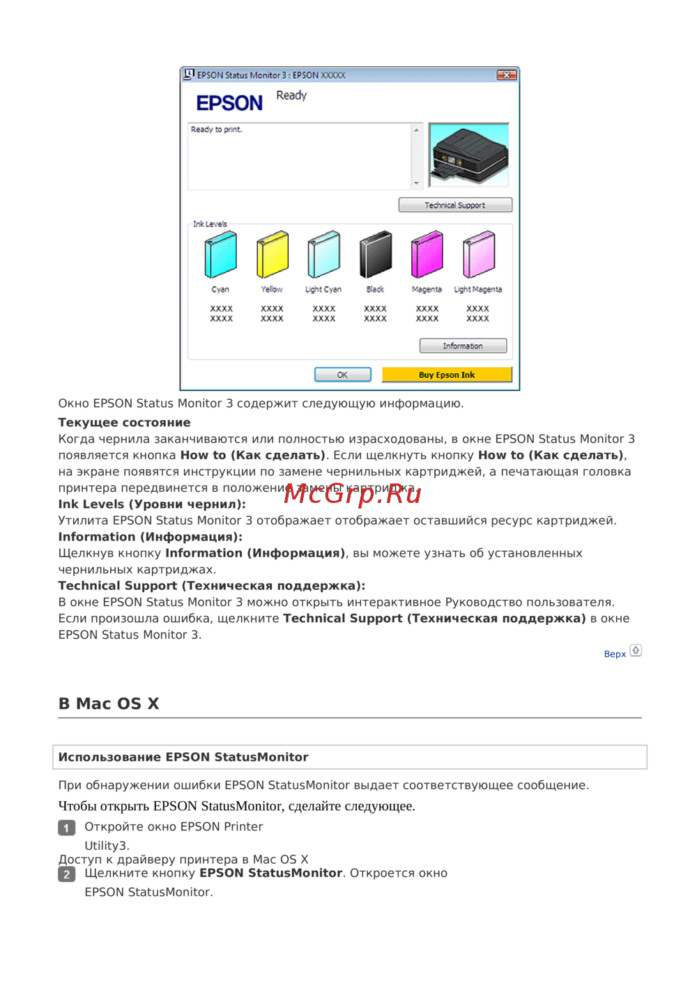 ИспользованиеEPSON StatusMonitor