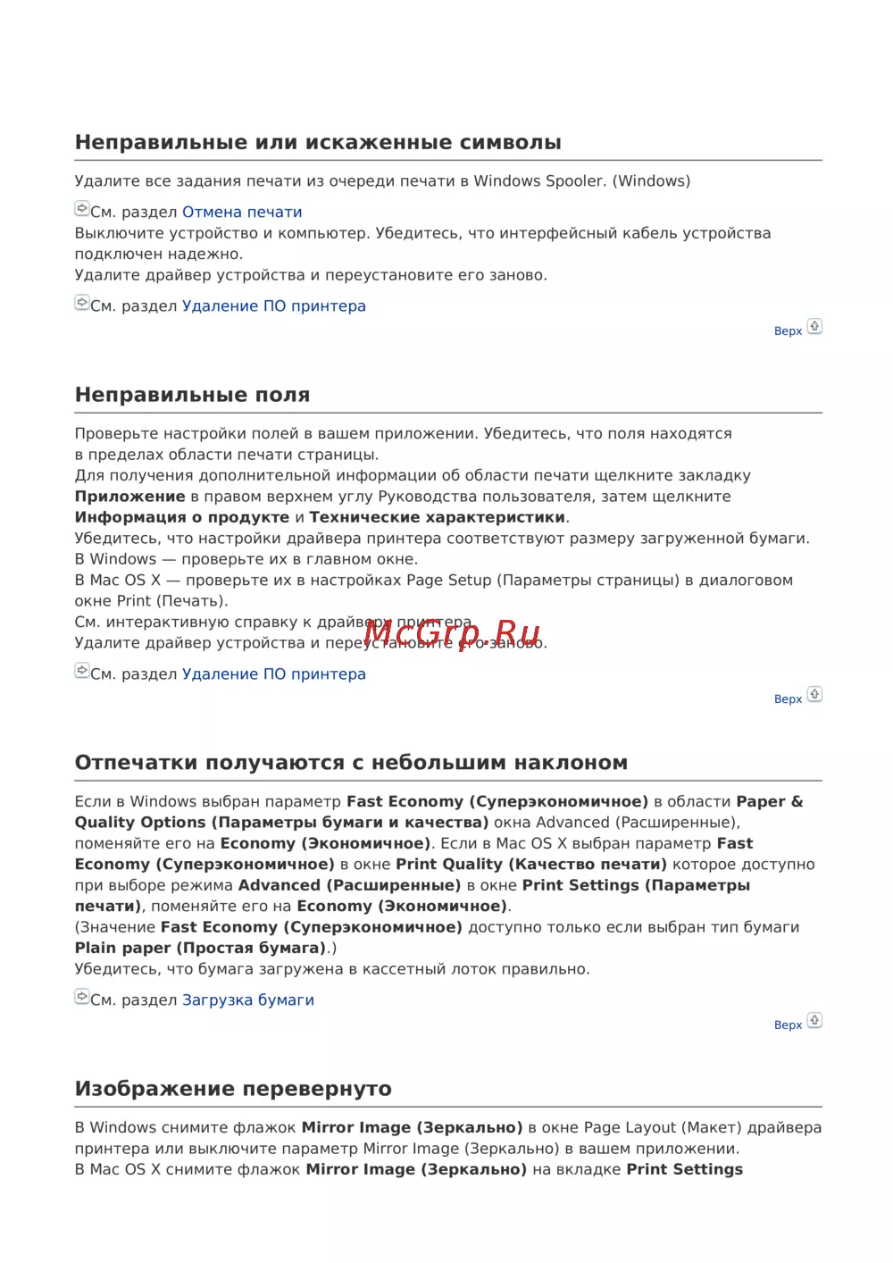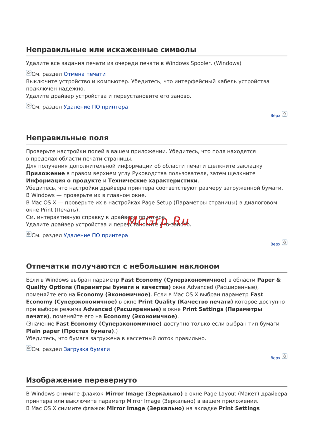принтера или выключите параметр Mirror Image (Зеркально) ввашем приложении.