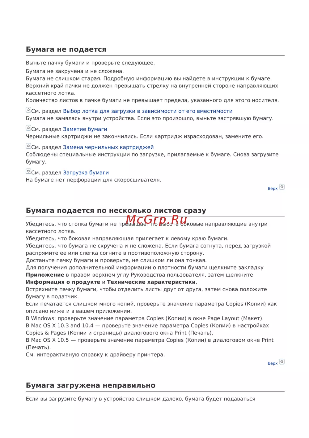 Убедитесь, что стопка бумаги не превышает по высоте боковые направляющие внутри