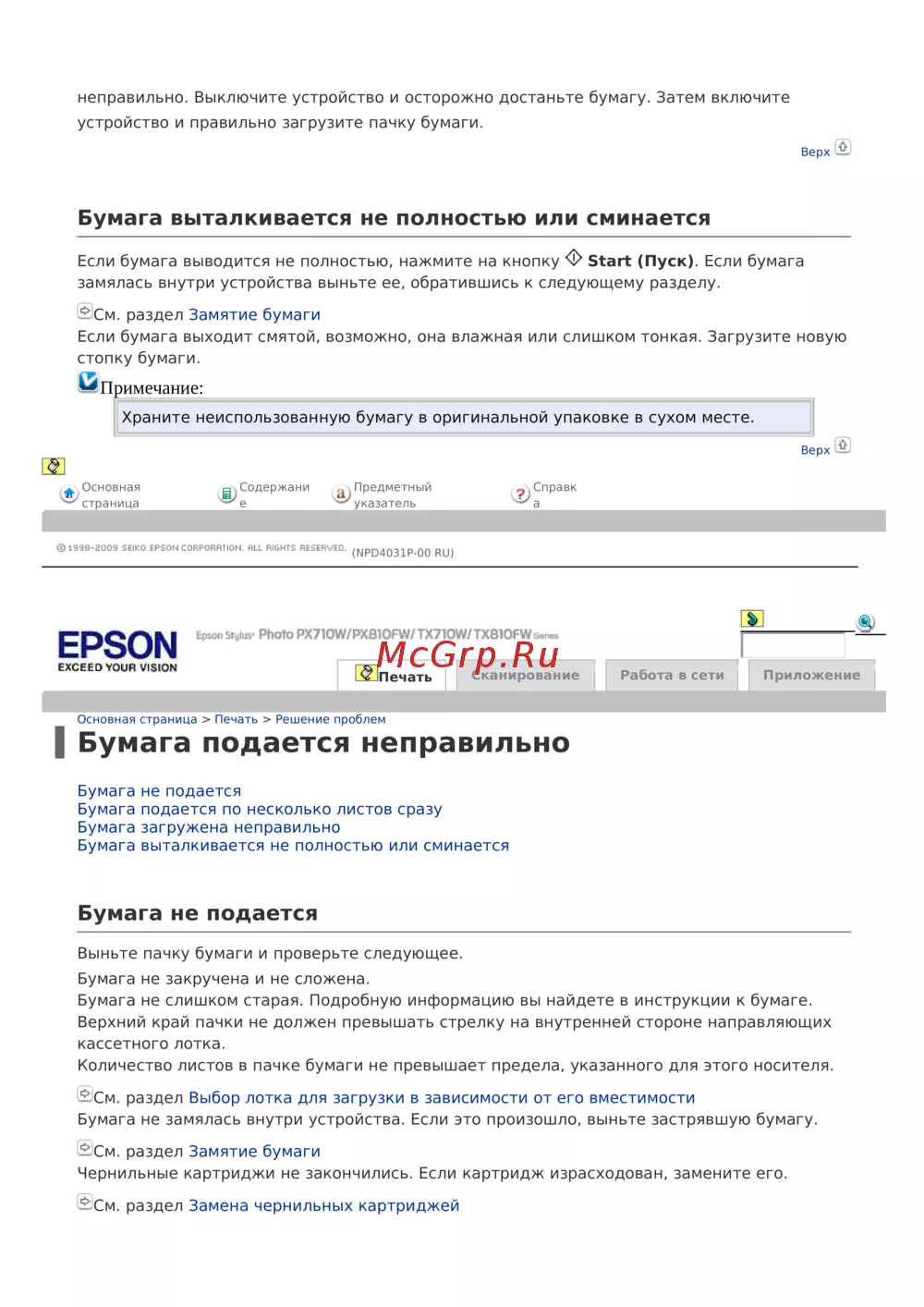 Epson Stylus Photo PX720WDИнструкция по эксплуатации -