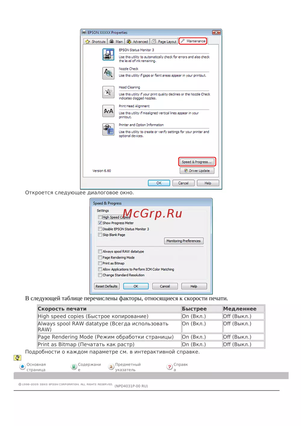 - Пользователи windows могут настраивать параметры относящиеся к скорости печати p.162