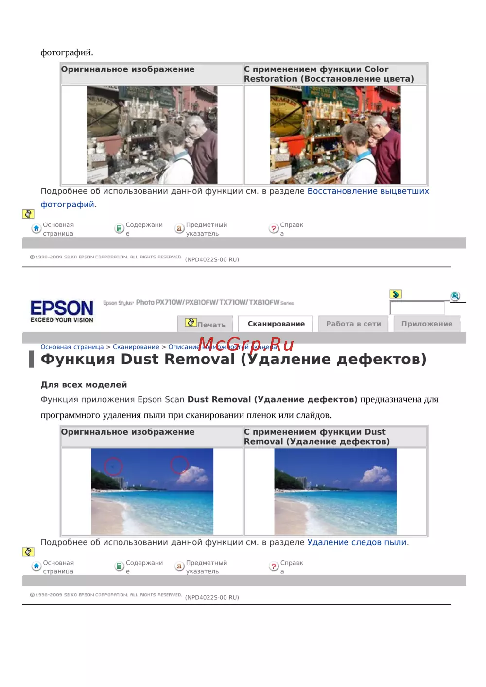 - Функция приложения epson scan dust removal удаление дефектов p.167
