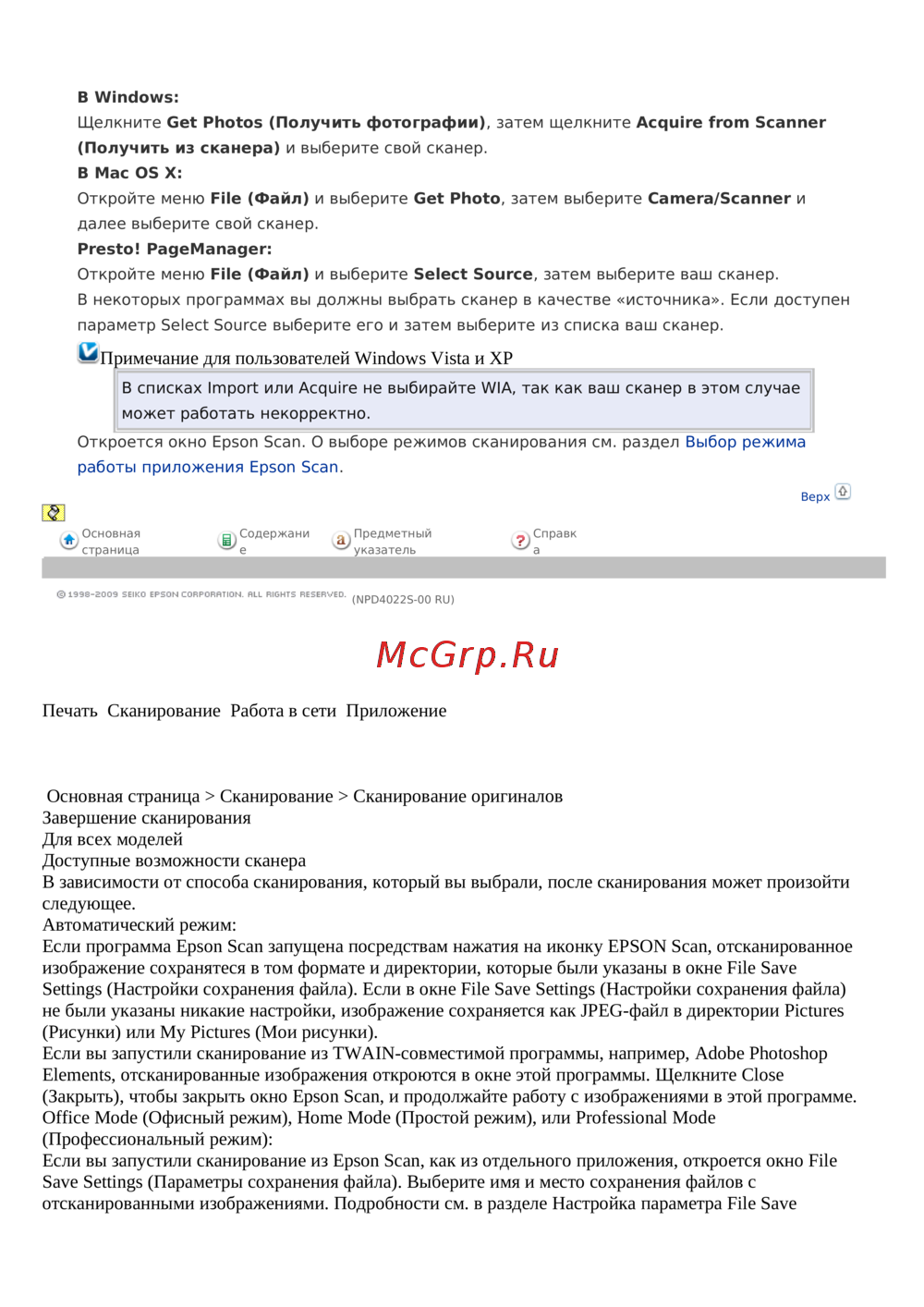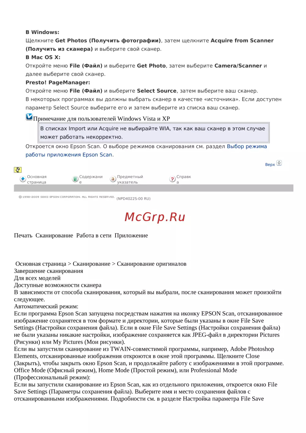 - С помощью значка epson scan p.169