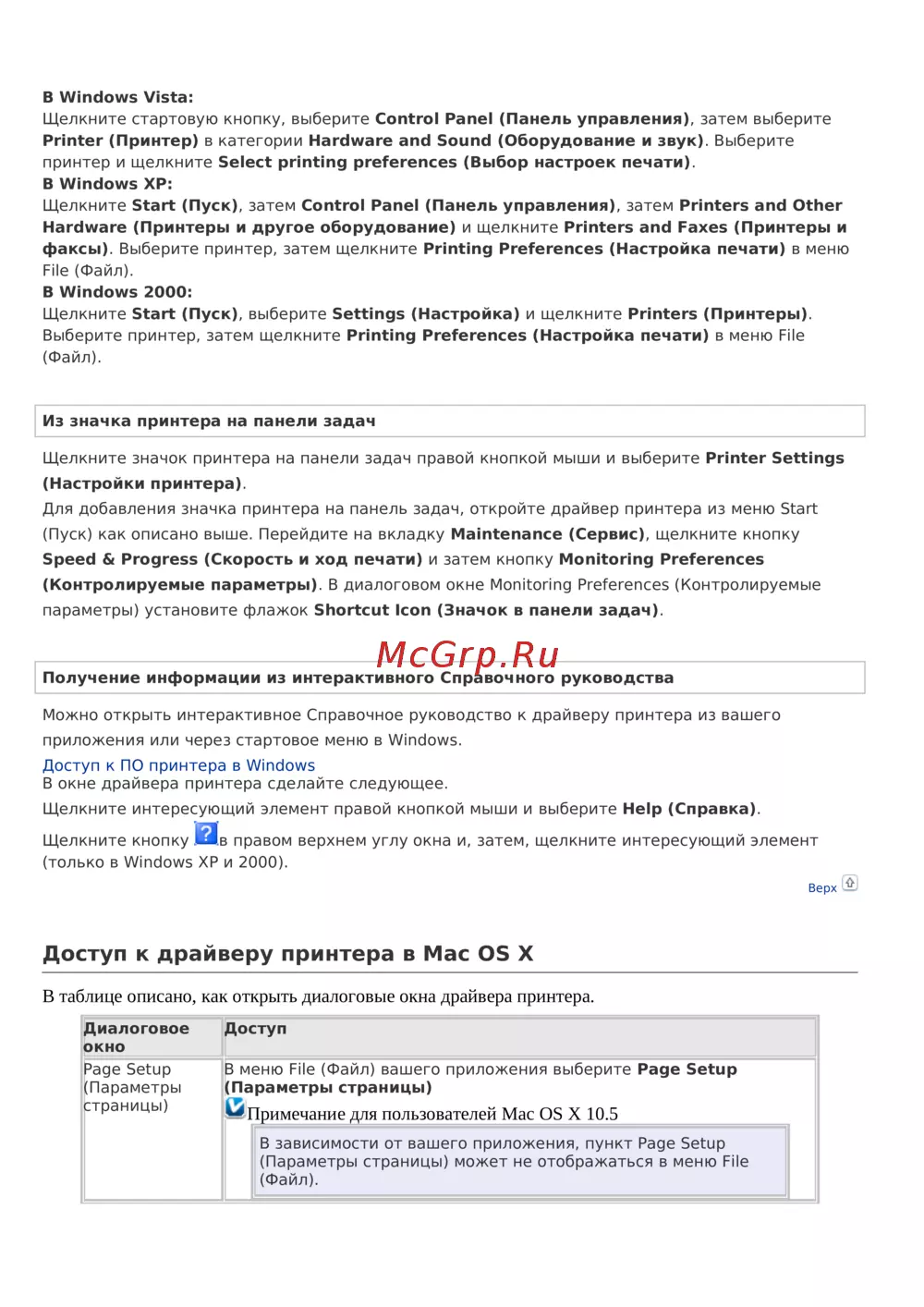 Можно открыть интерактивное Справочное руководство кдрайверу принтера из вашего