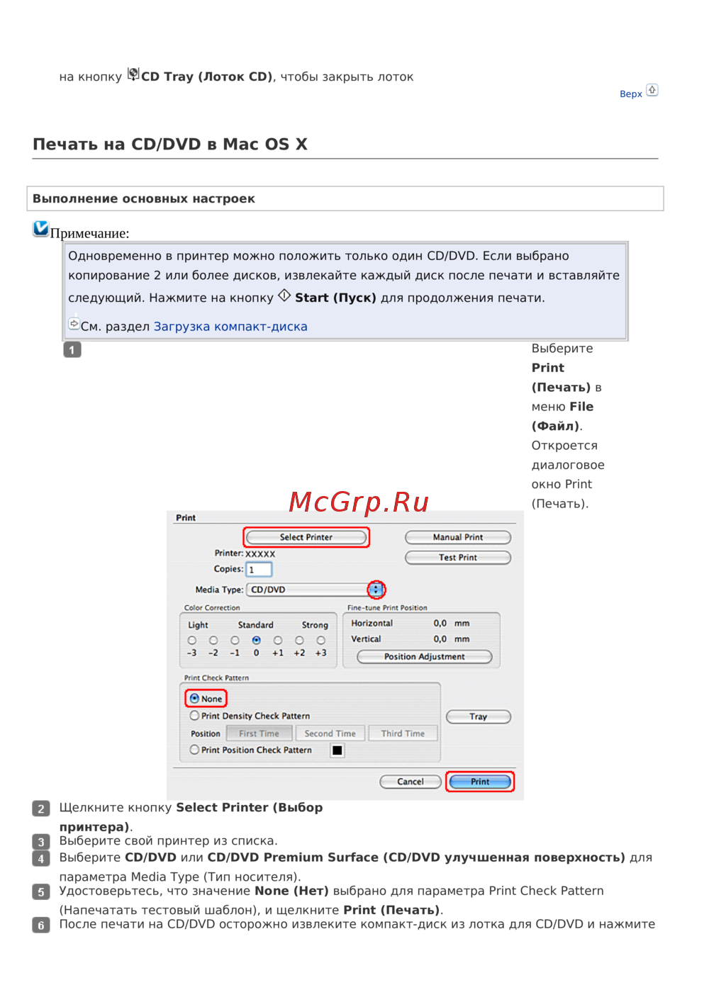 Одновременно впринтер можно положить только одинCD/DVD. Если выбрано