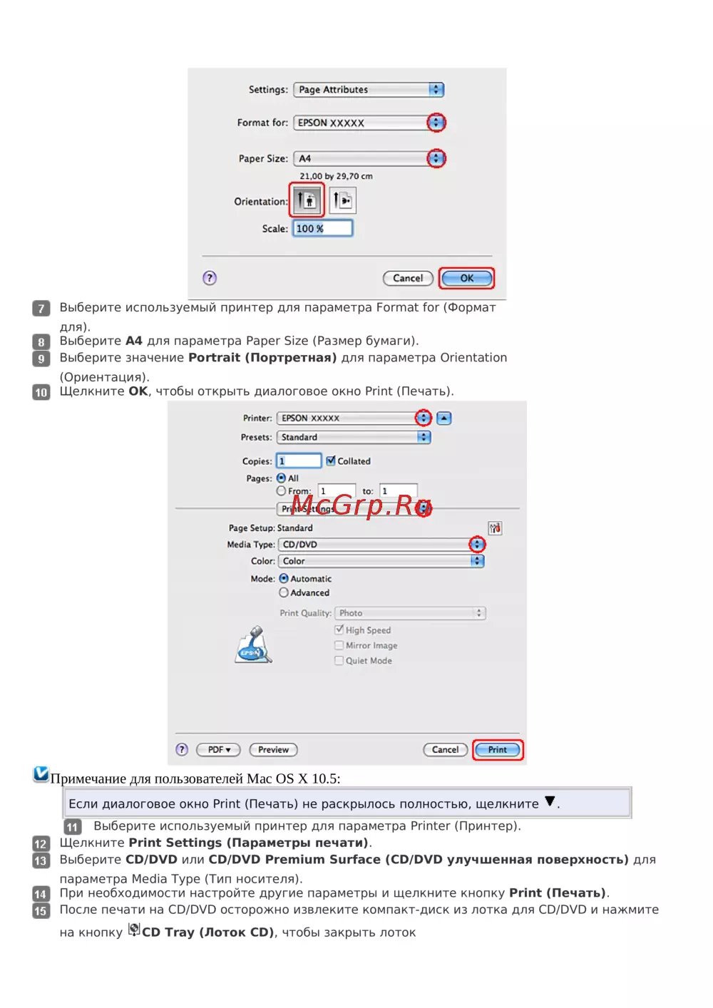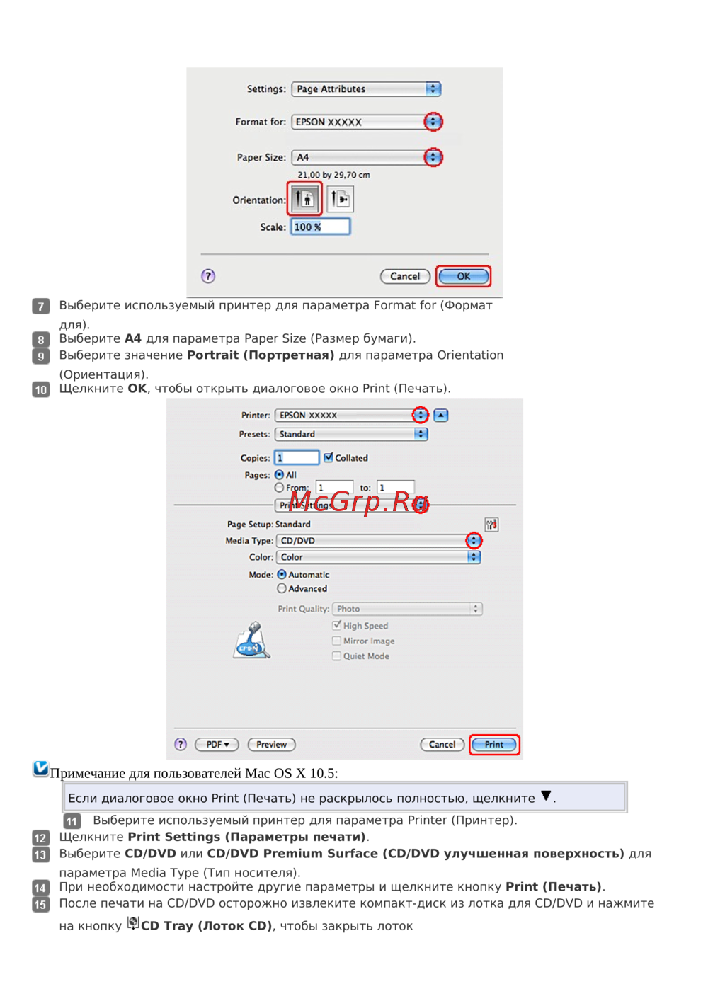 - Примечание для пользователей mac os x 10 или 10 p.6