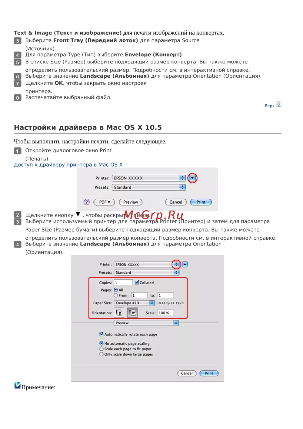 - Примечание для пользователей mac os x 10 или 10 p.6