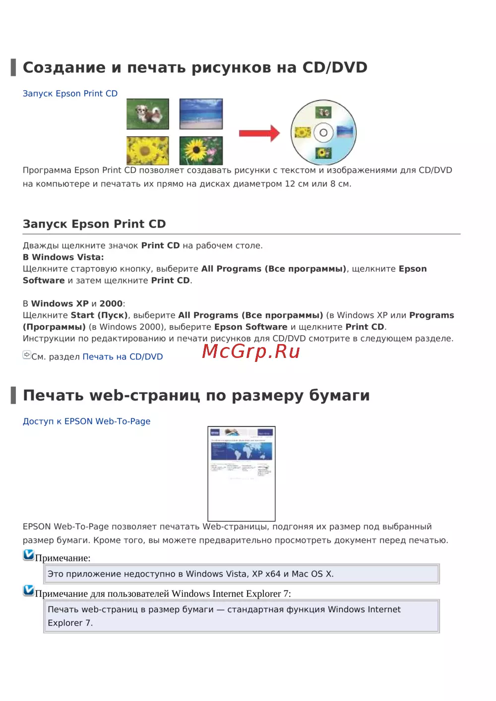 EPSON Web-To-Page позволяет печатать Web-страницы, подгоняя их размер под выбранный