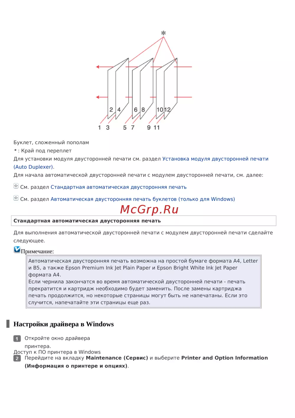 См.раздел Автоматическая двусторонняя печать буклетов (только для Windows)