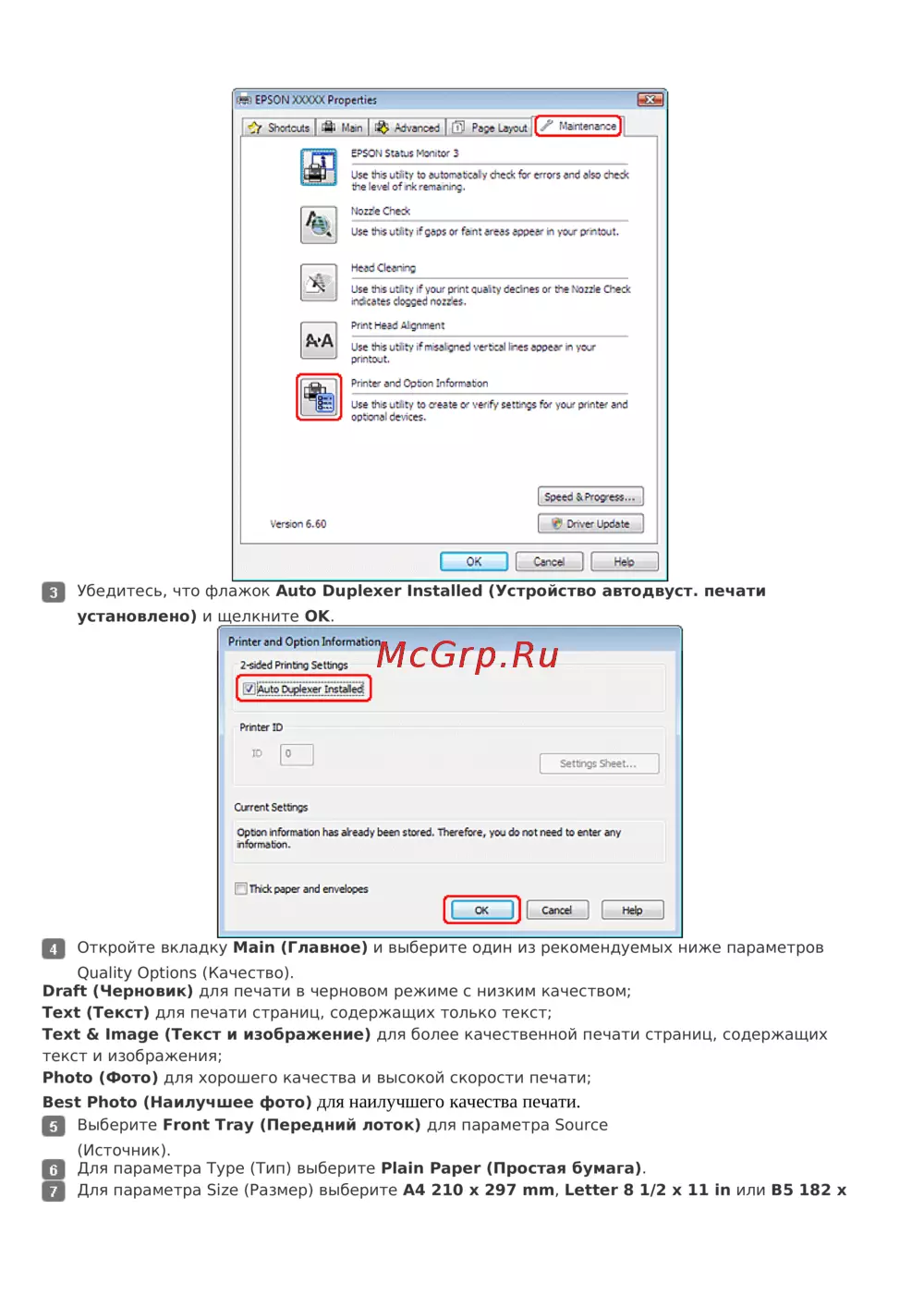 Убедитесь, что флажок Auto Duplexer Installed (Устройство автодвуст. печати