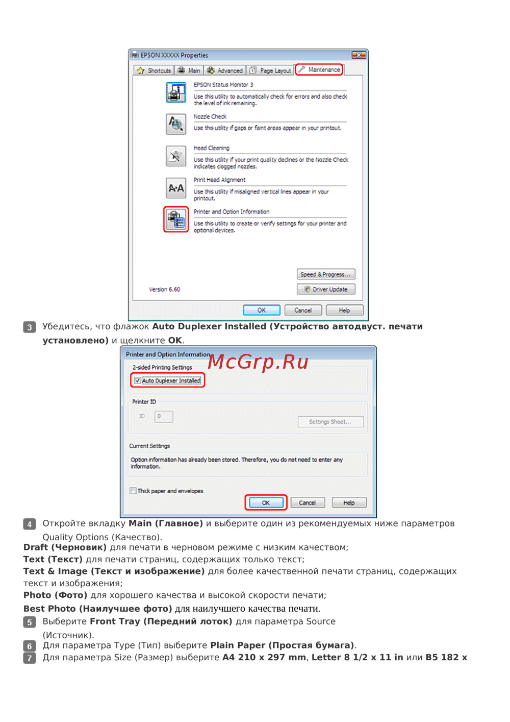 - Papers простая бумага а для параметра print quality качество печати выбрано normal p.165