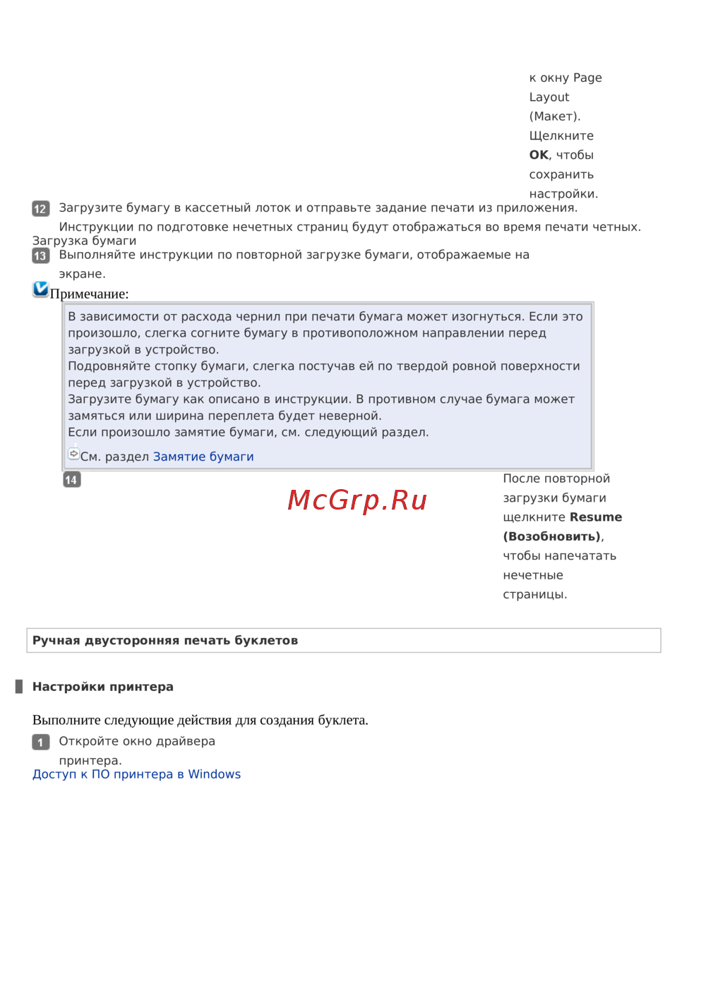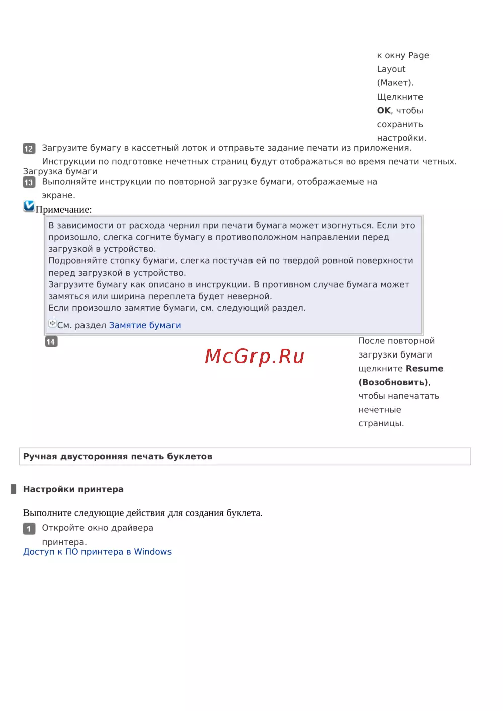 Инструкции по подготовке нечетных страниц будут отображаться во время печати четных.