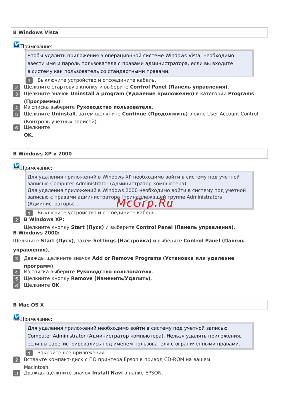 - Примечание для пользователей mac os x 10 или 10 p.11
