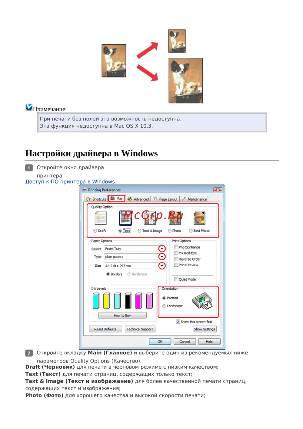 - Не все типы бумаги позволяют печатать фотографии без полей поддерживаемые типы бумаги для p.15