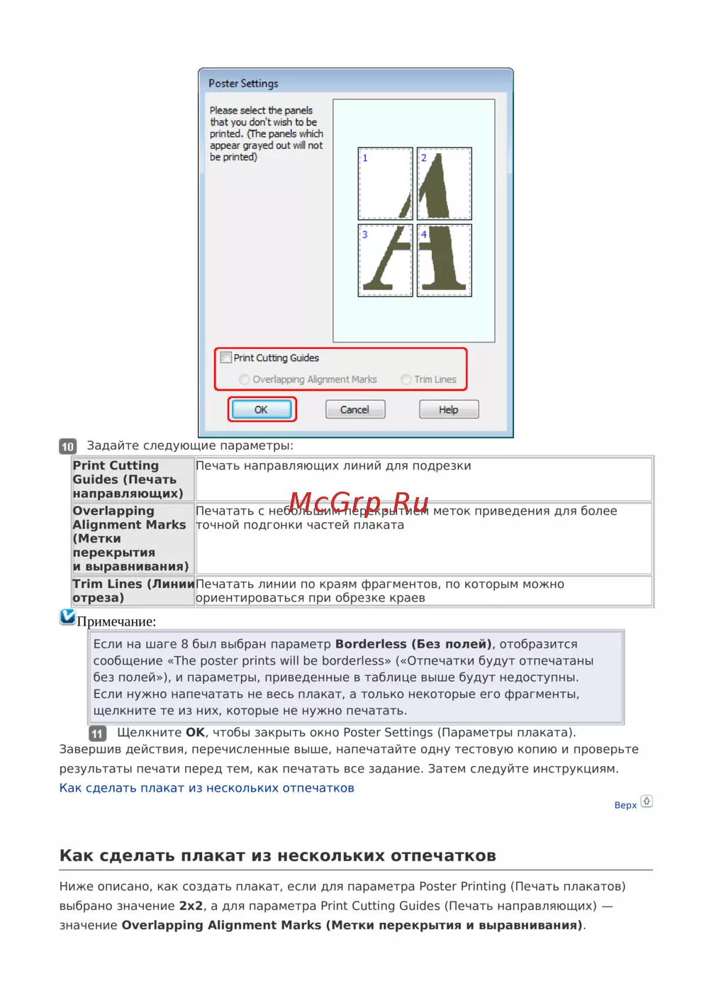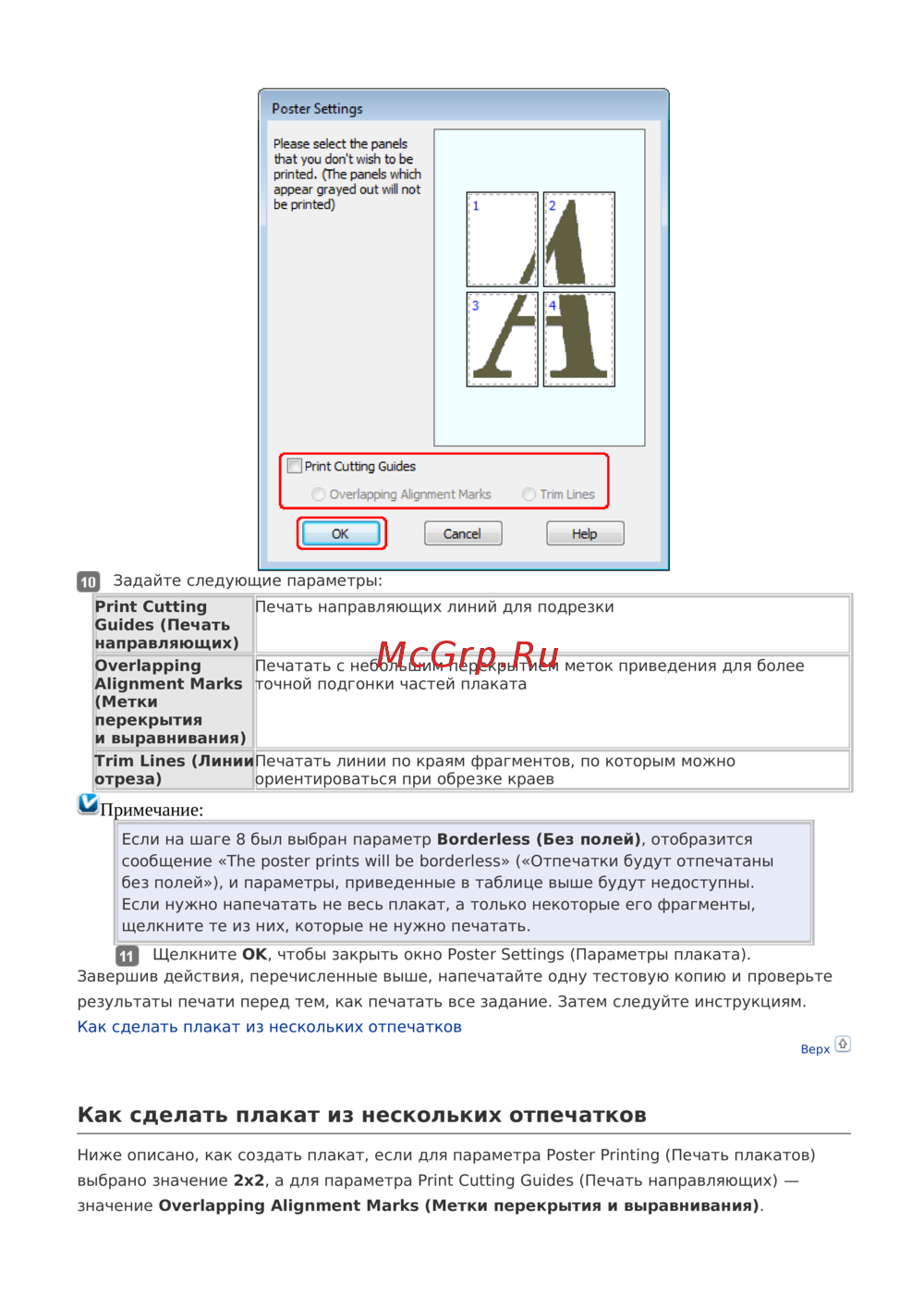 Ниже описано, как создать плакат, еслидля параметра Poster Printing (Печать плакатов)