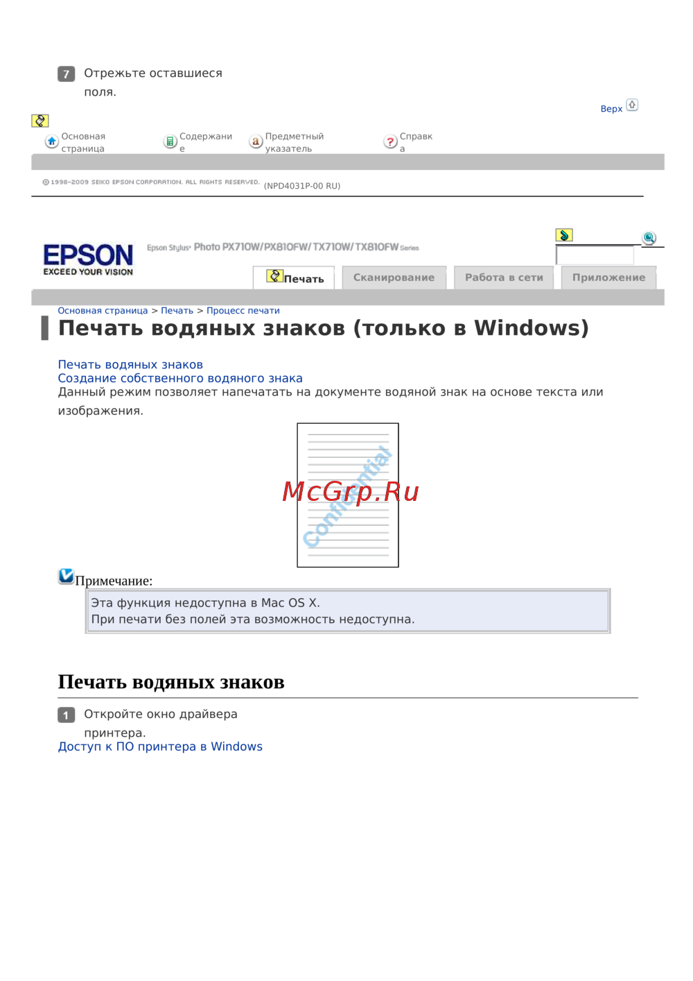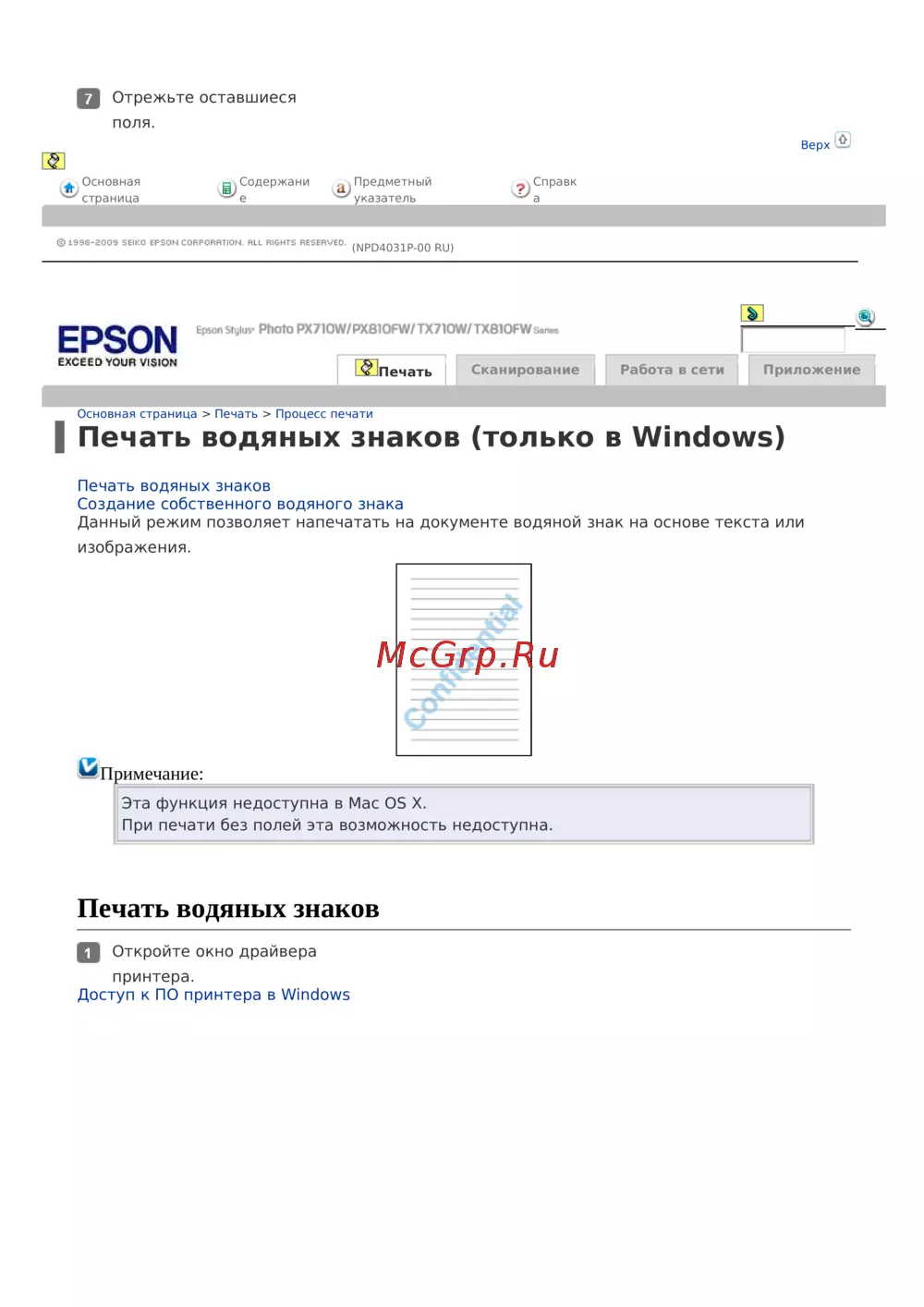- В windows в главном окне драйвера принтера или в окне advanced расширенные p.165