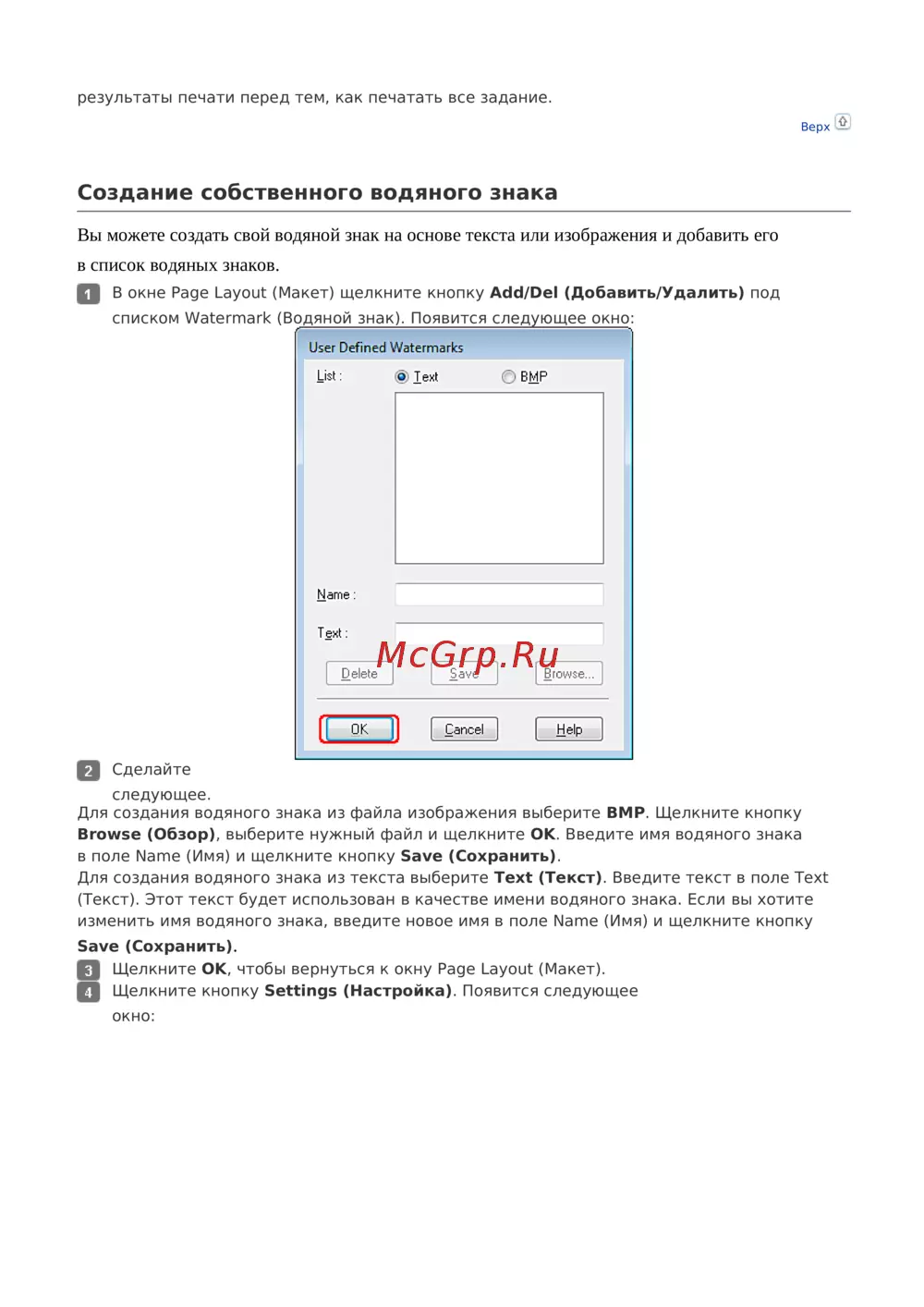 Browse (Обзор), выберите нужный файл ищелкните OK. Введите имя водяного знака