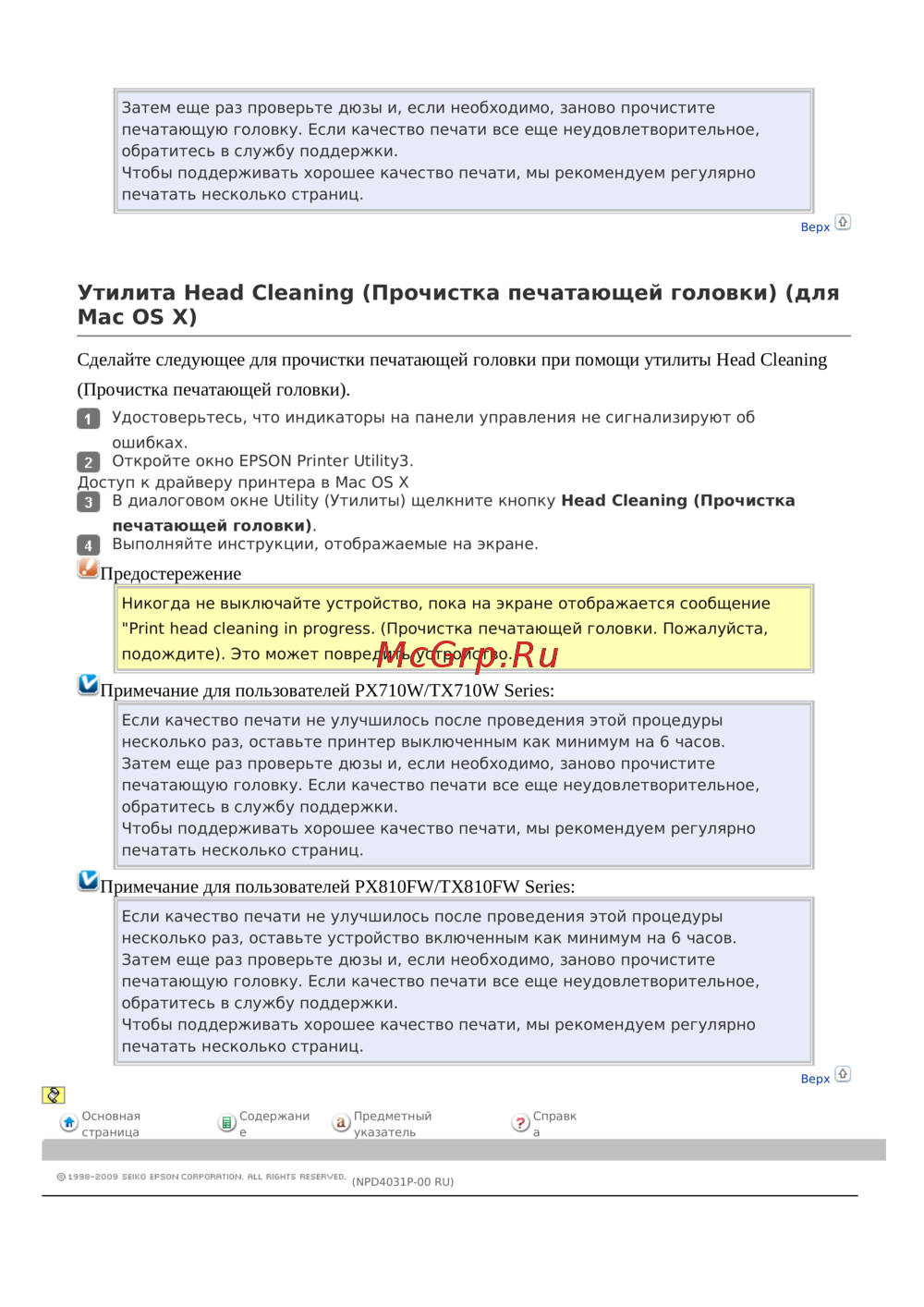 Epson TX710W [97/176] Утилита head cleaning прочистка печатающей головки для mac os x
