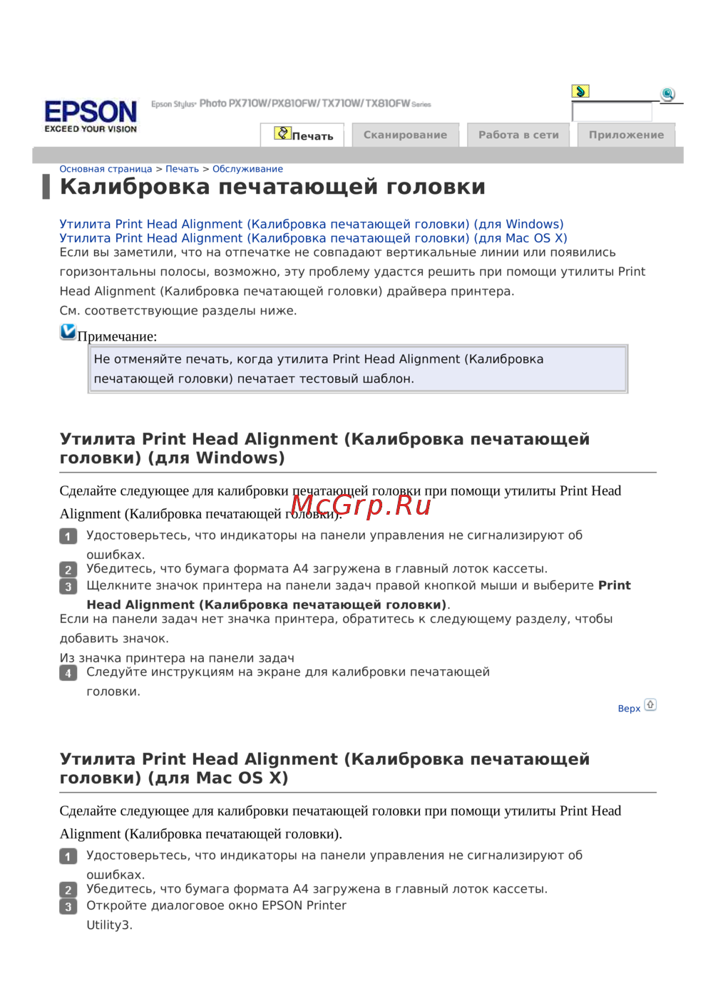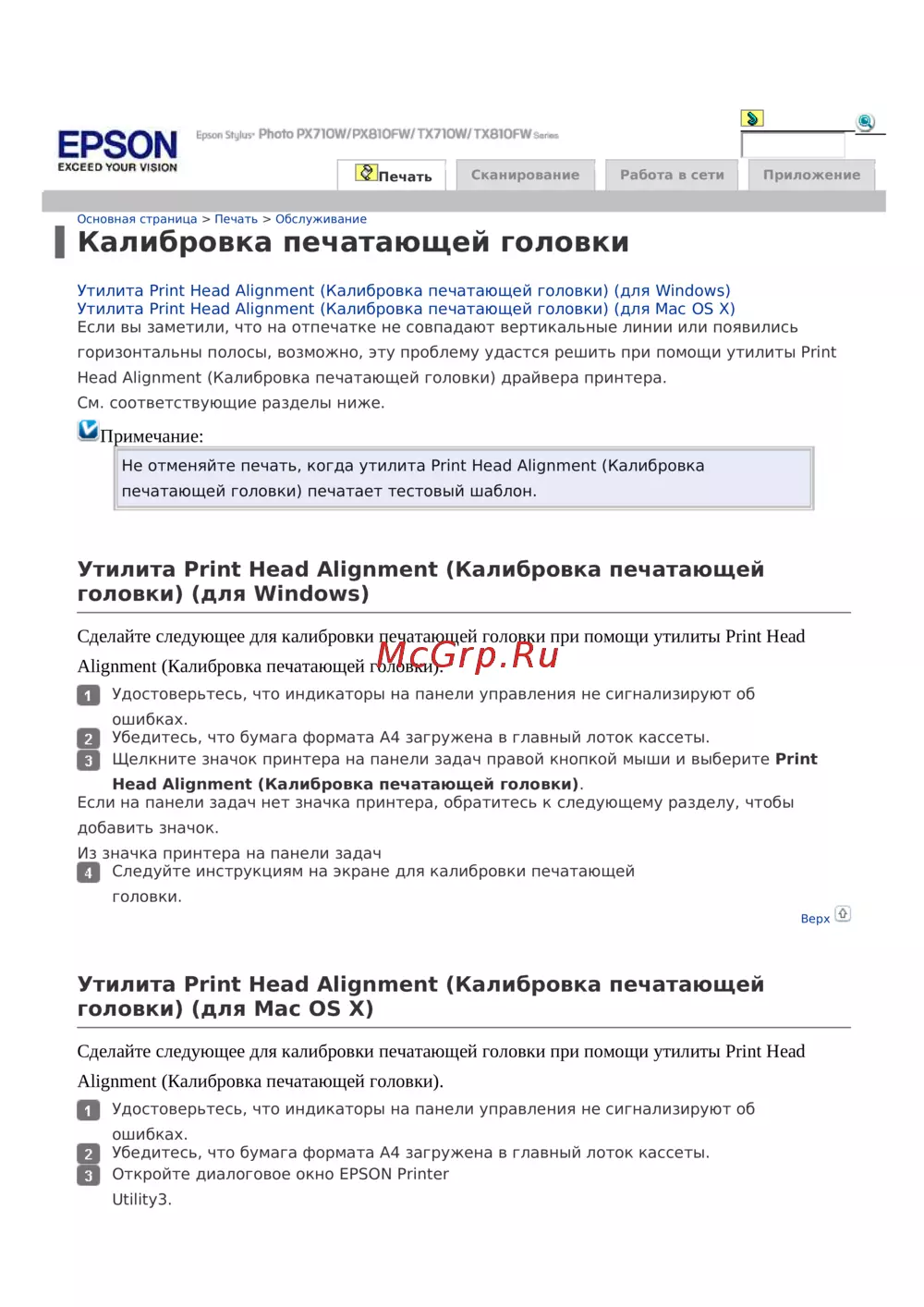 Epson TX710W [98/176] Утилита print head alignment калибровка печатающей головки для windows