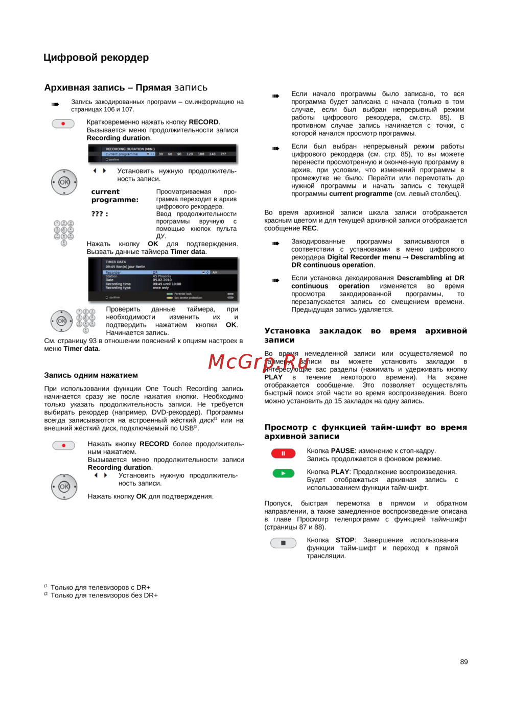 работы цифрового рекордера, см.стр. 85). В