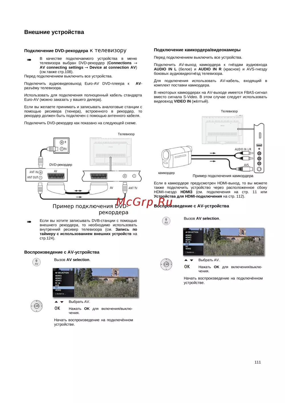 Подключить AV-выход камкордера к гнёздам аудиовхода