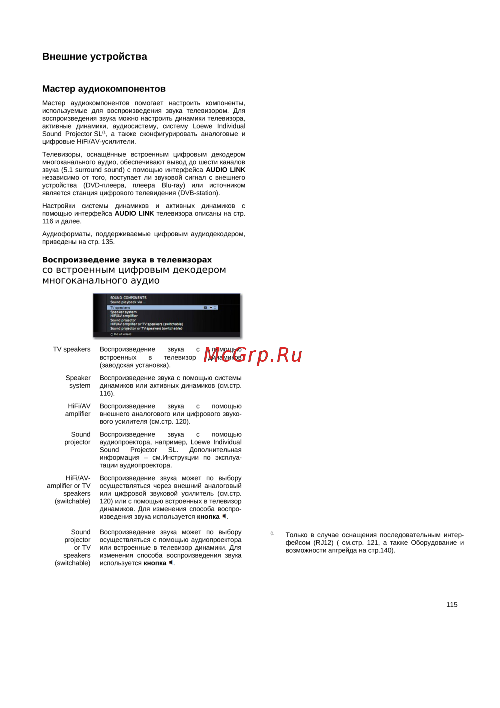 помощью интерфейса AUDIO LINK телевизора описаны на стр.