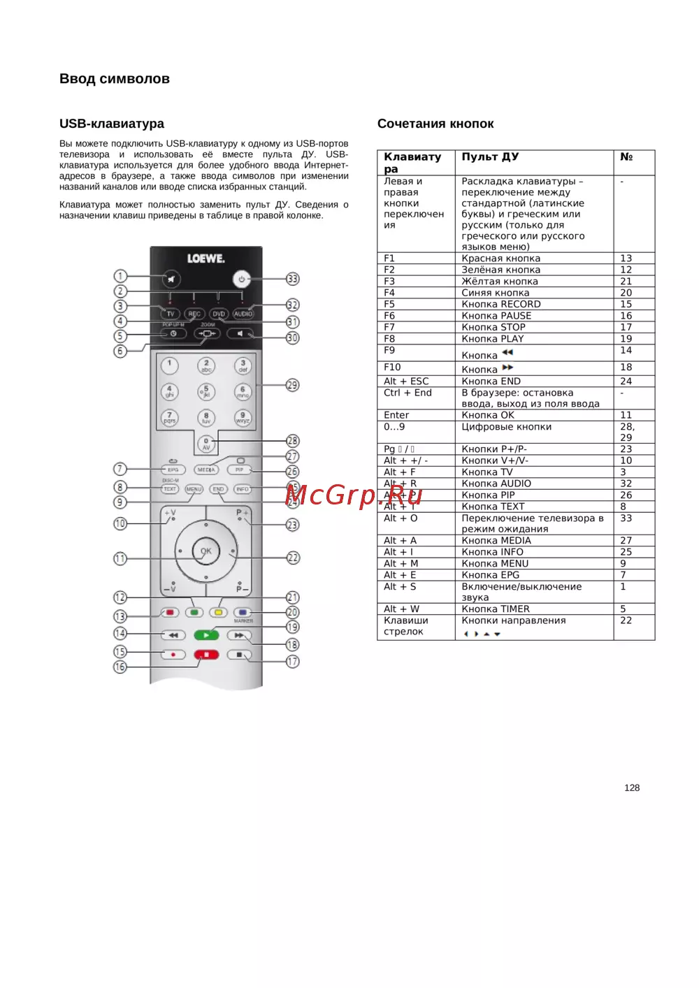 Loewe Connect 32 51408U82 White [147/176] Сочетания кнопок