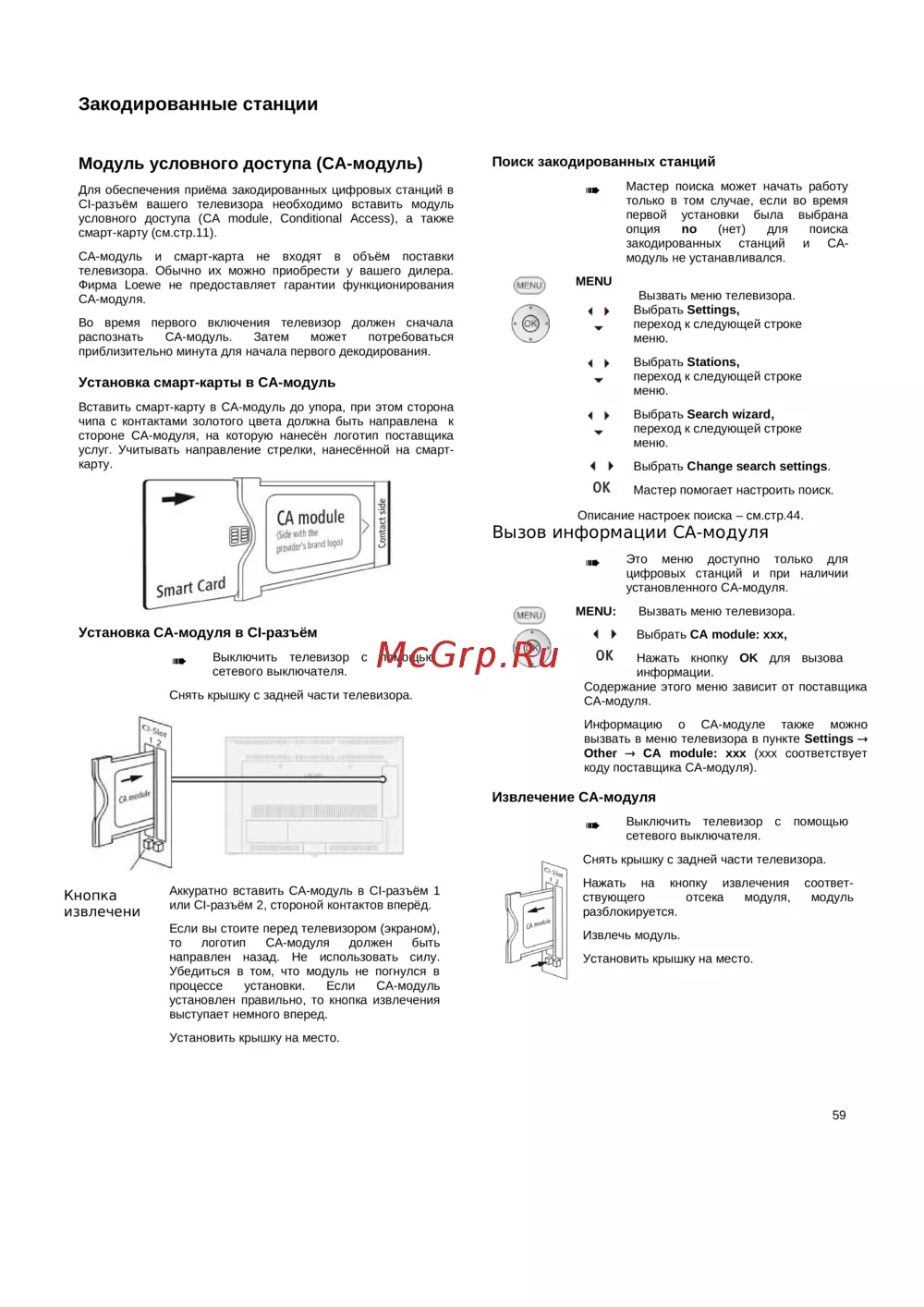 Аккуратно вставить CA-модуль в CI-разъём 1