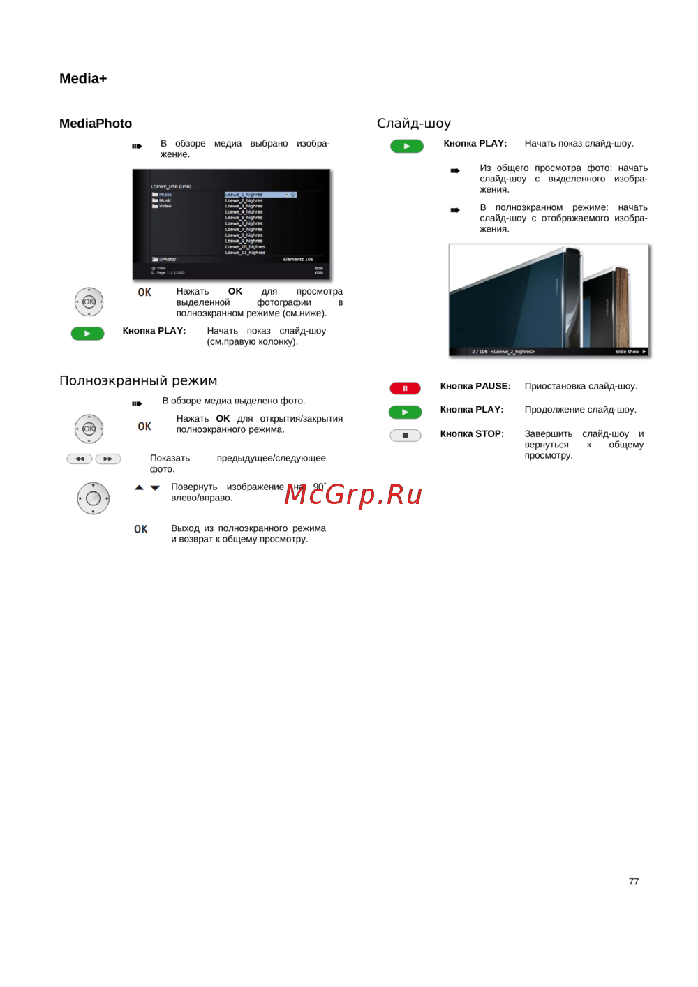 Кнопка PLAY: Начать показ слайд-шоу.