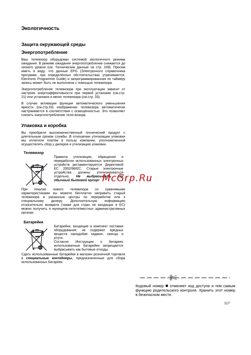 - Кодовый номер отменяет код доступа и тем самым функцию родительского контроля хранить этот номер в безопасном месте p.126