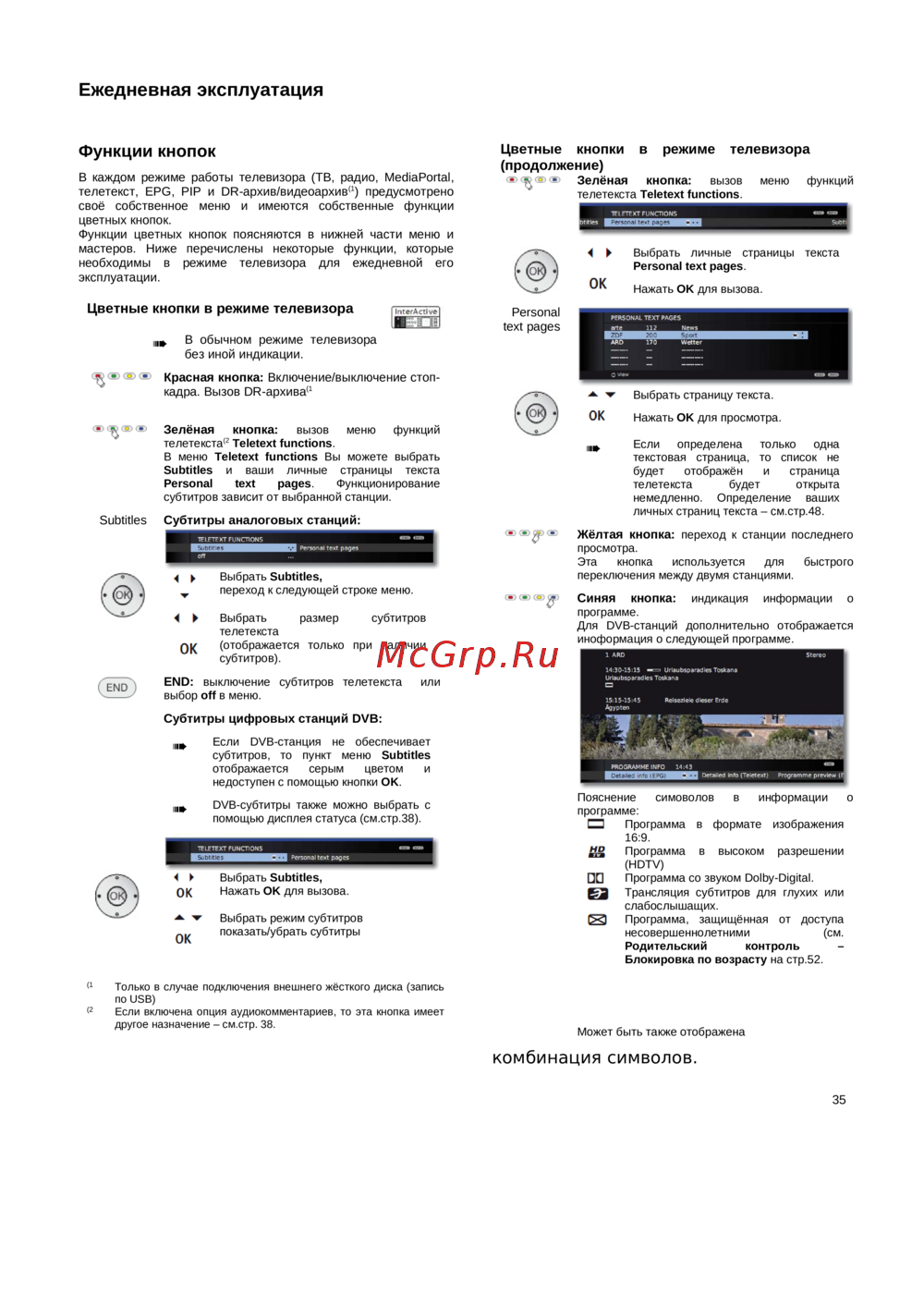 - Функции цветных кнопок в режиме телевизора p.2