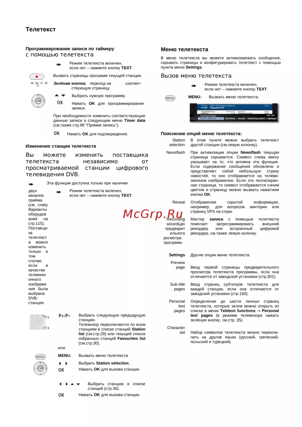 - Использование пульта ду для управления телевизором в режиме радио p.111