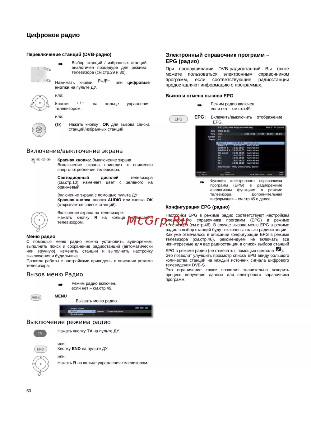 - Использование пульта ду для управления телевизором в режиме радио p.111