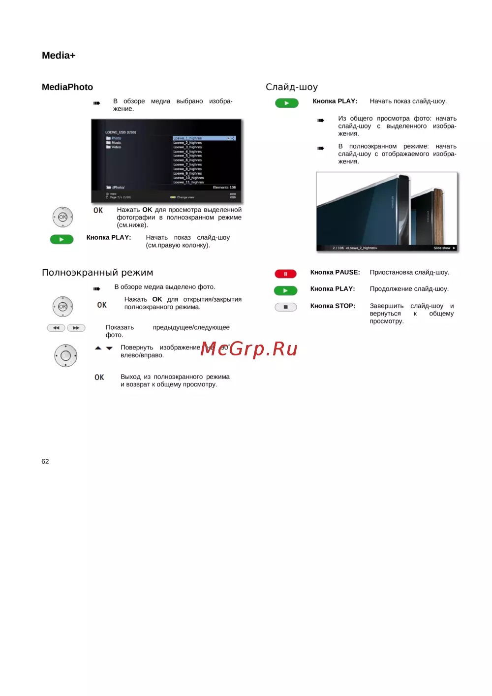 Кнопка PAUSE: Приостановка слайд-шоу.